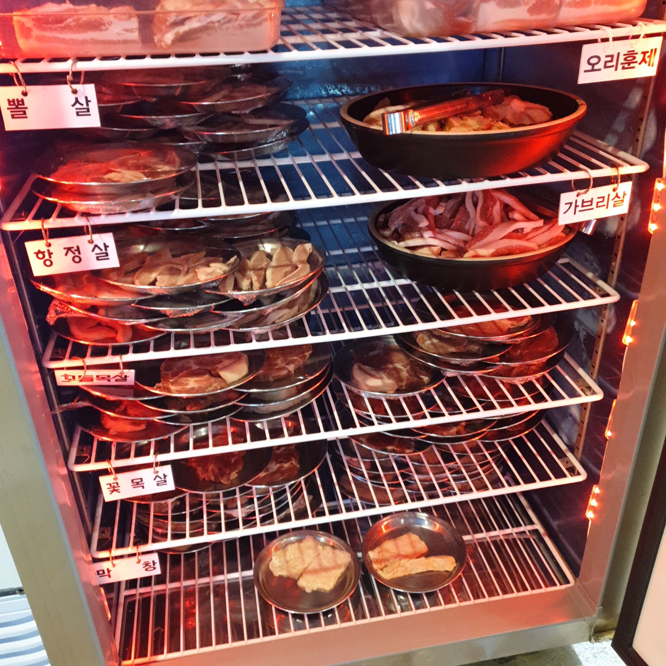 이렇게 냉장고가 준비되어 있고, 안에서 드시고싶은 고기 꺼내서 드시면 됩니다~