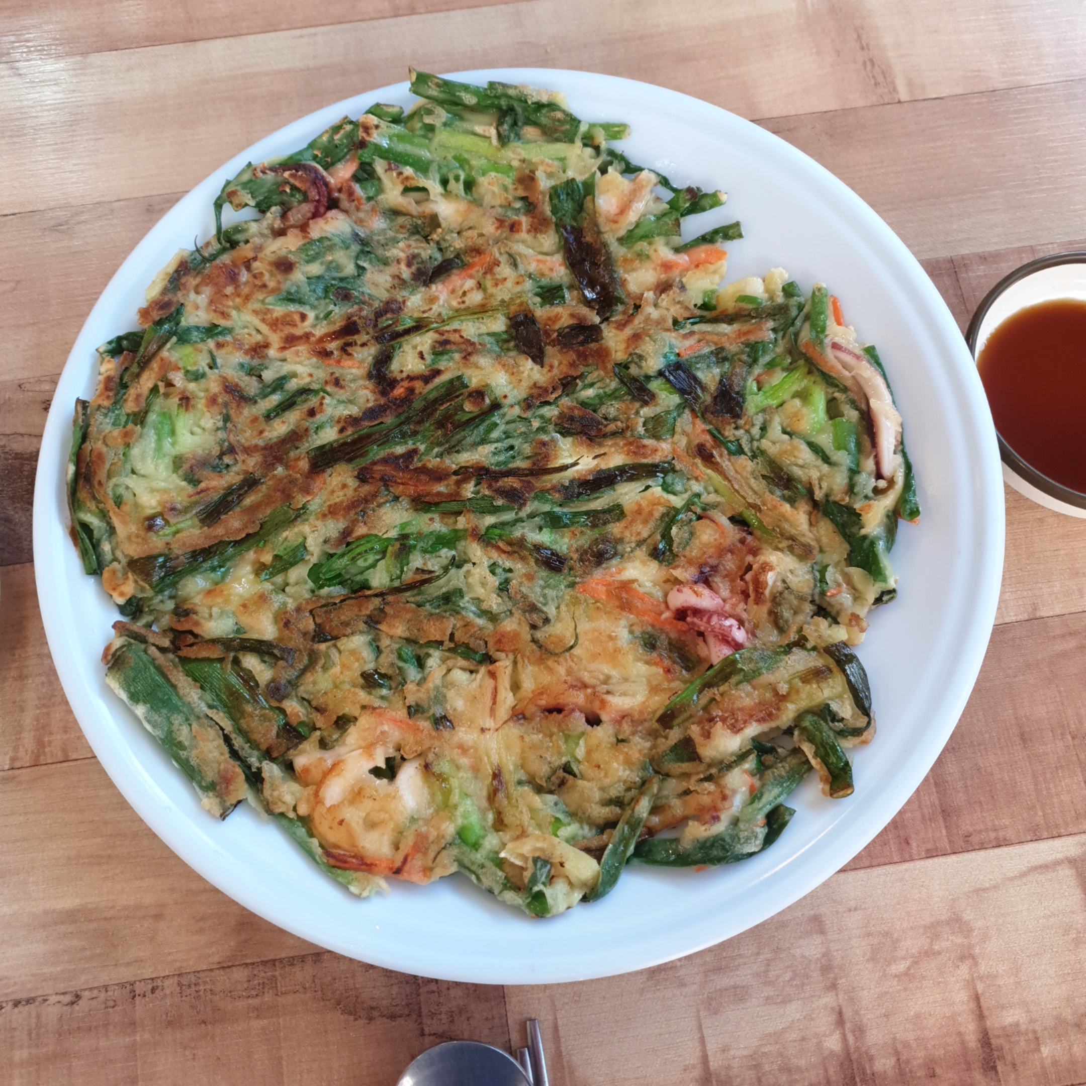 저는 오징어파전, 국수, 그리고 위 사진엔 없지만 가게 입구에 있던 '두릅튀김'까지 시켜봤습니다.