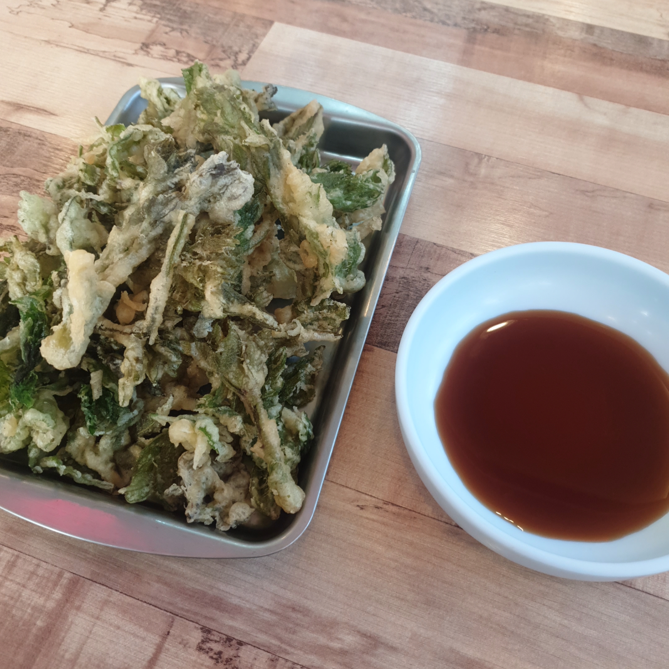 약간 이파리 부스러기? 같은 부분들은 같이 시킨 국수에 넣어먹으면 튀김우동 같은 맛도 나고 괜찮았습니다.