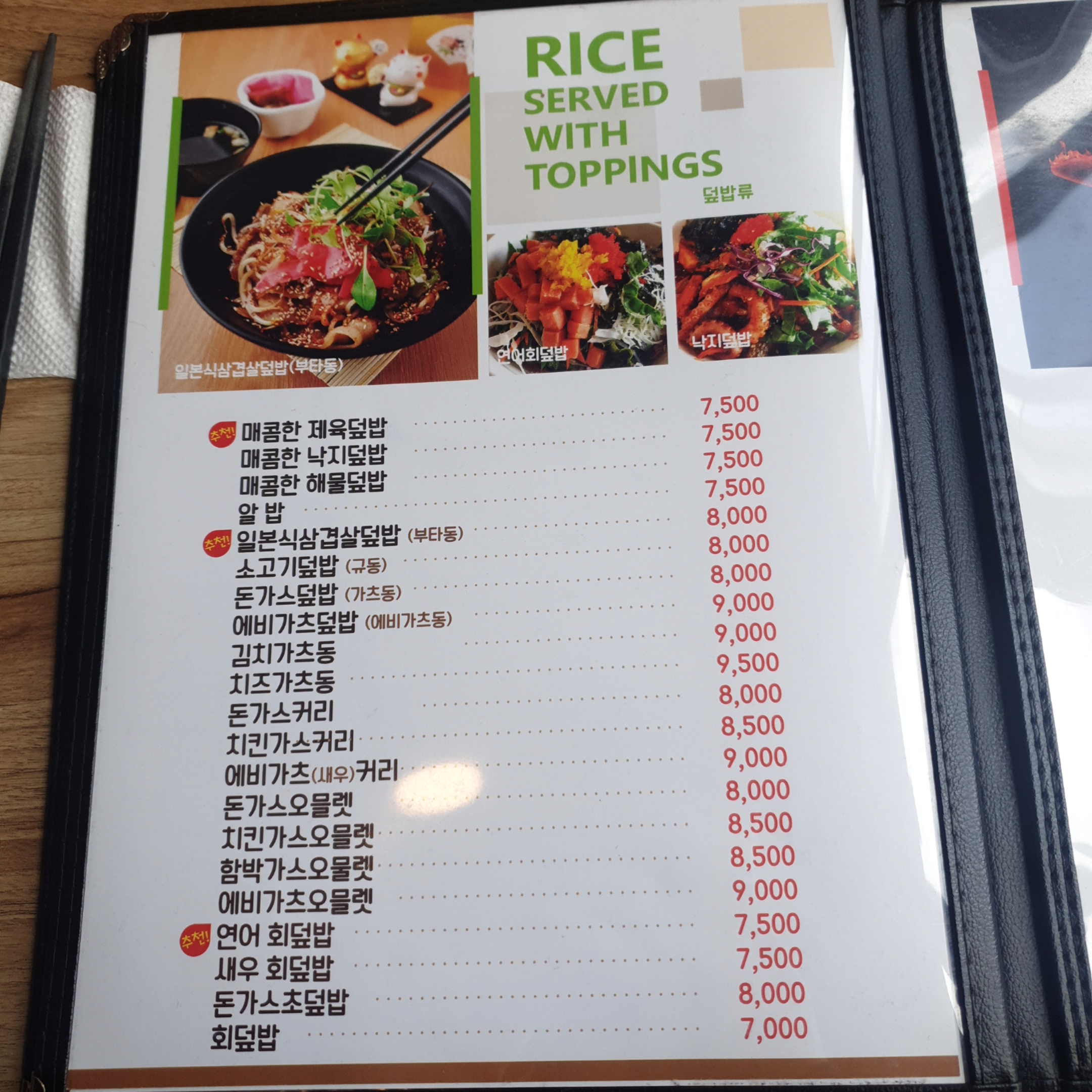 다양한 돈까스들과 일본식 덮밥들이 준비되어 있는 곳이었습니다.