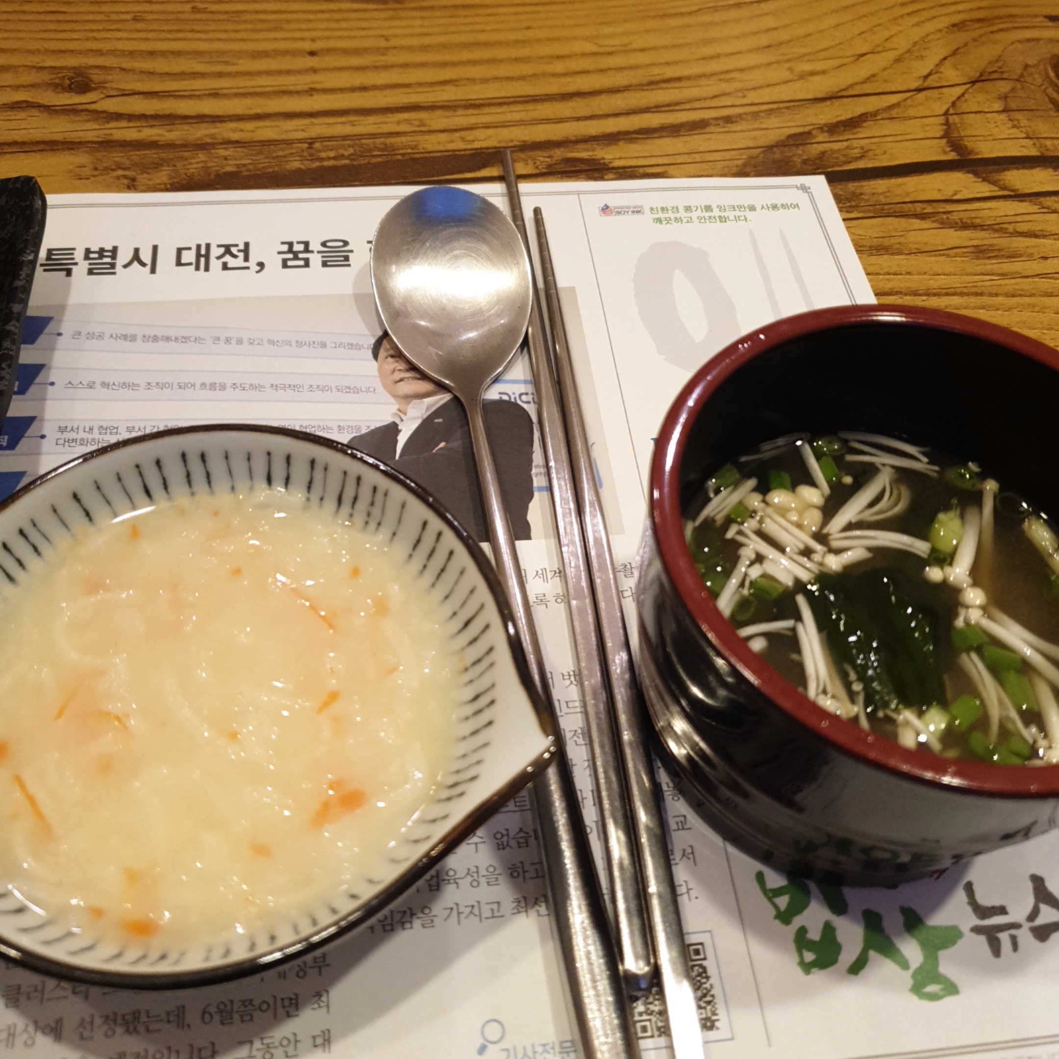 먼저 제공되는 죽과 장국입니다.