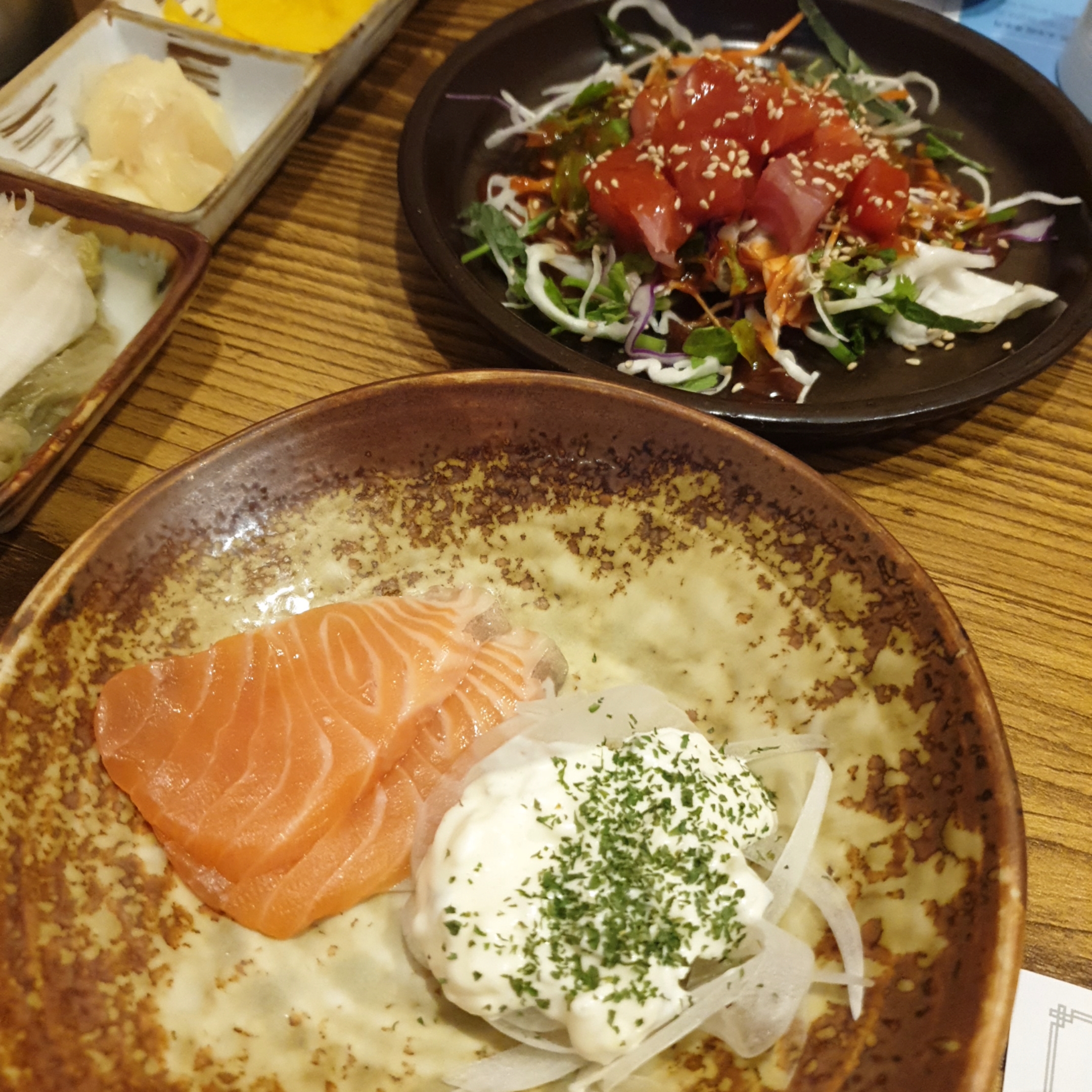다음은 연어회와 참치회무침입니다.