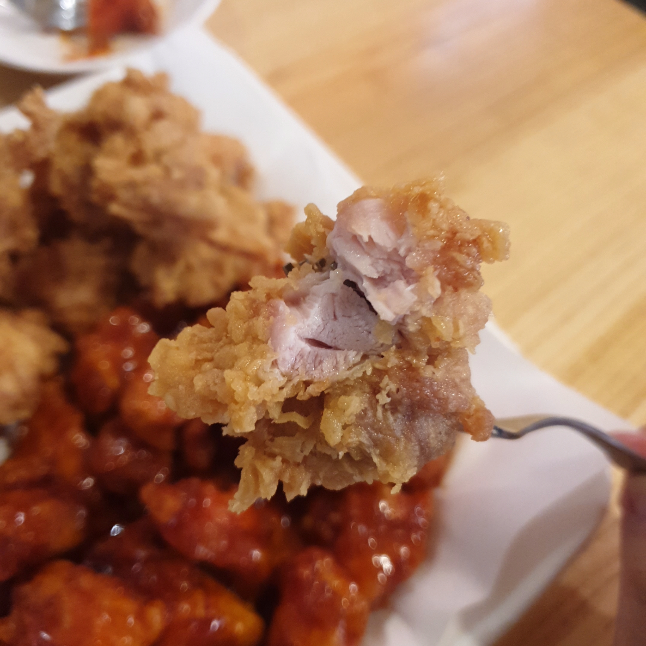 살짝 짭쪼름한 듯한 튀김은 바삭함의 극치였고, 양념치킨과 마찬가지로 속살은 아주 부드러웠습니다.