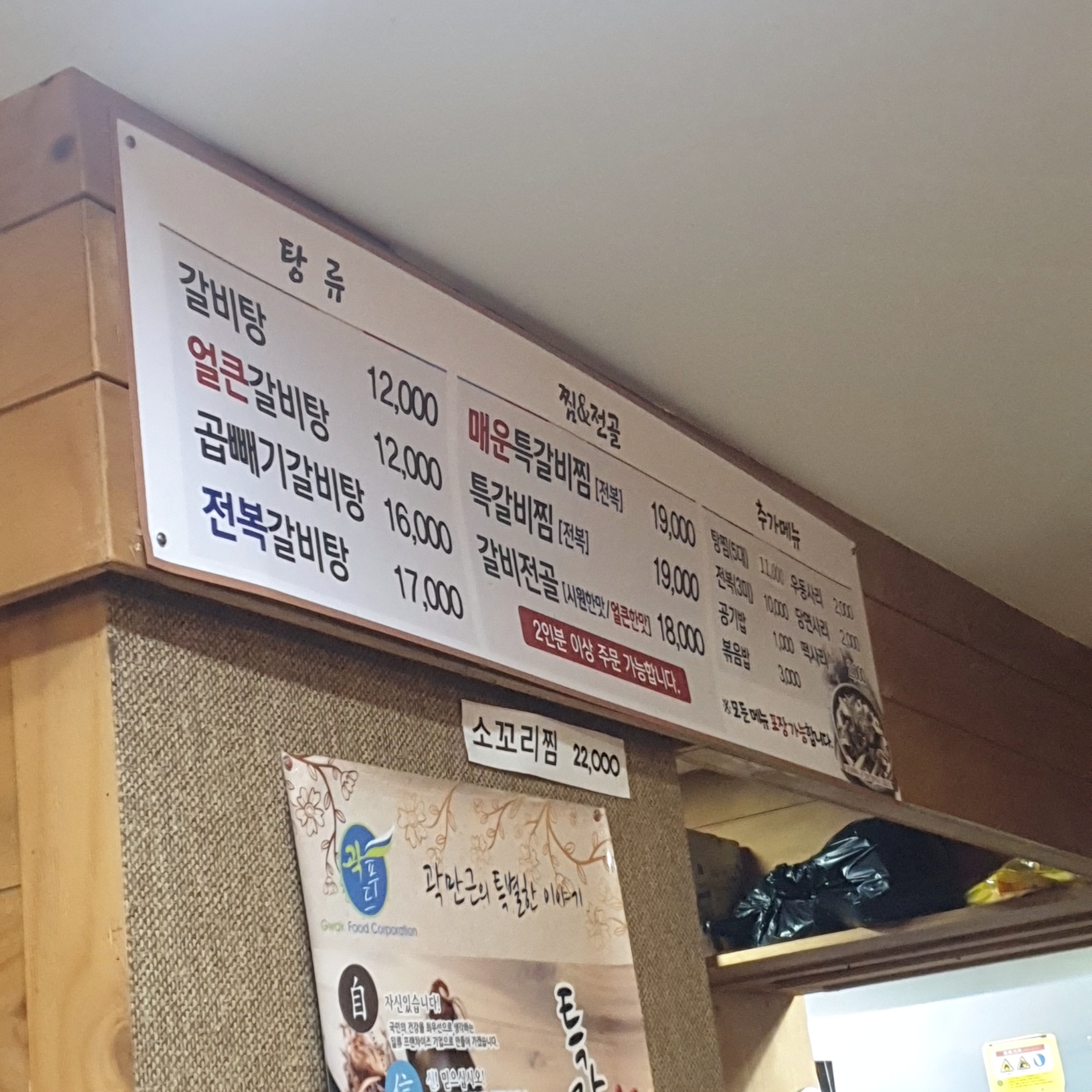 곽만근갈비탕 메뉴입니다.
