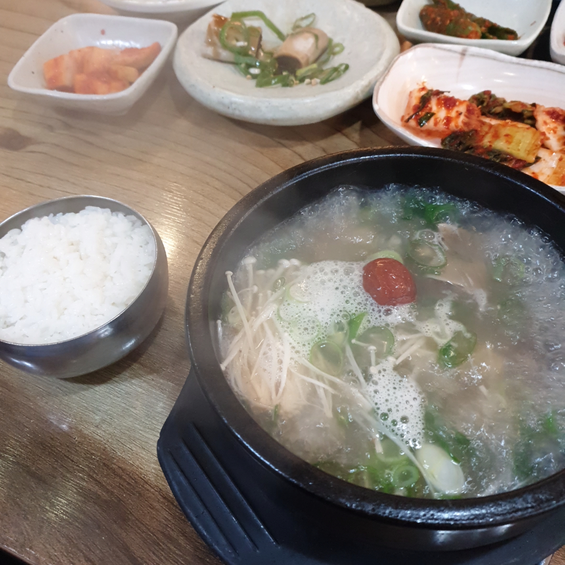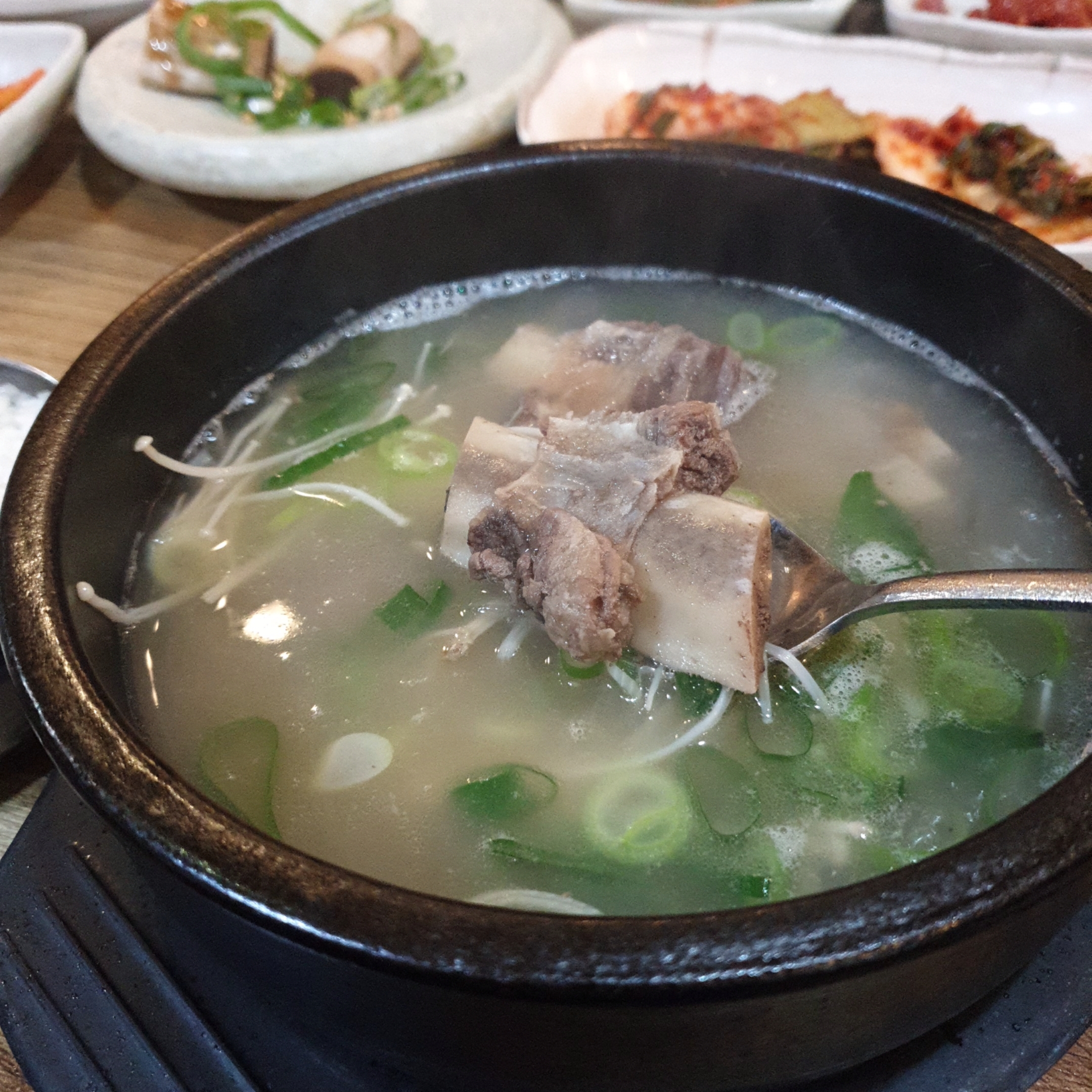 팔파팔 끓는 뚝배기에 뽀얀 갈비탕이 담겨져 나왔습니다.