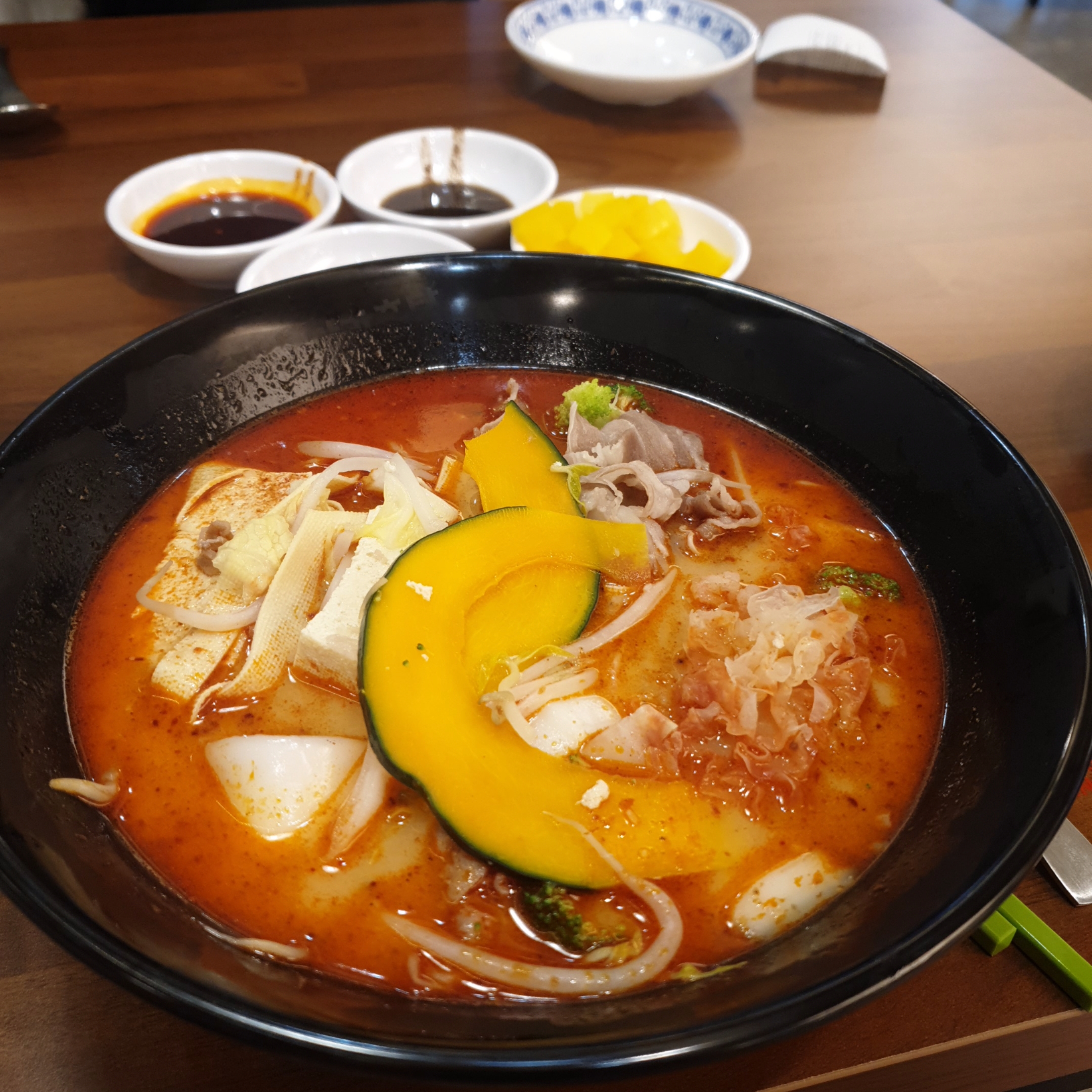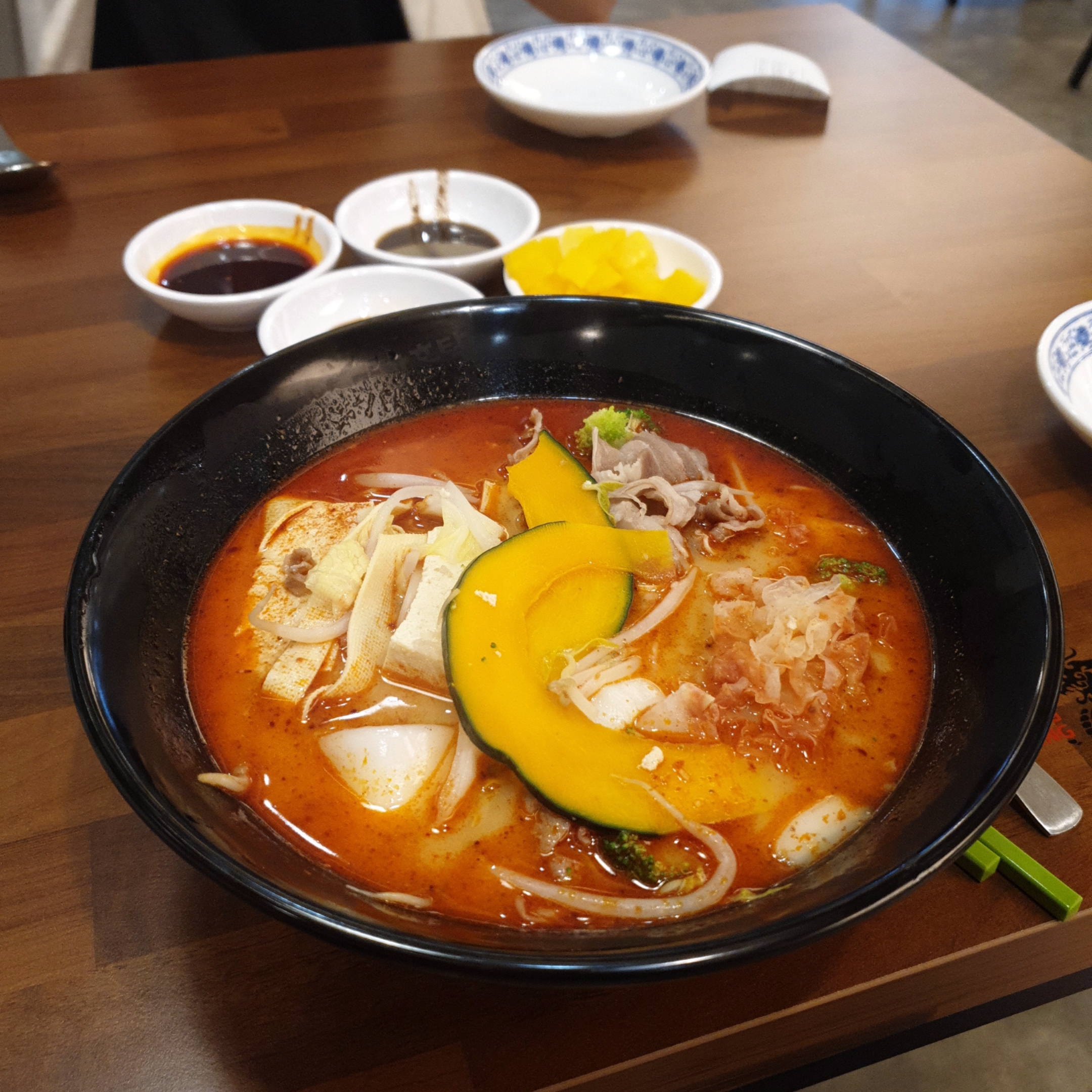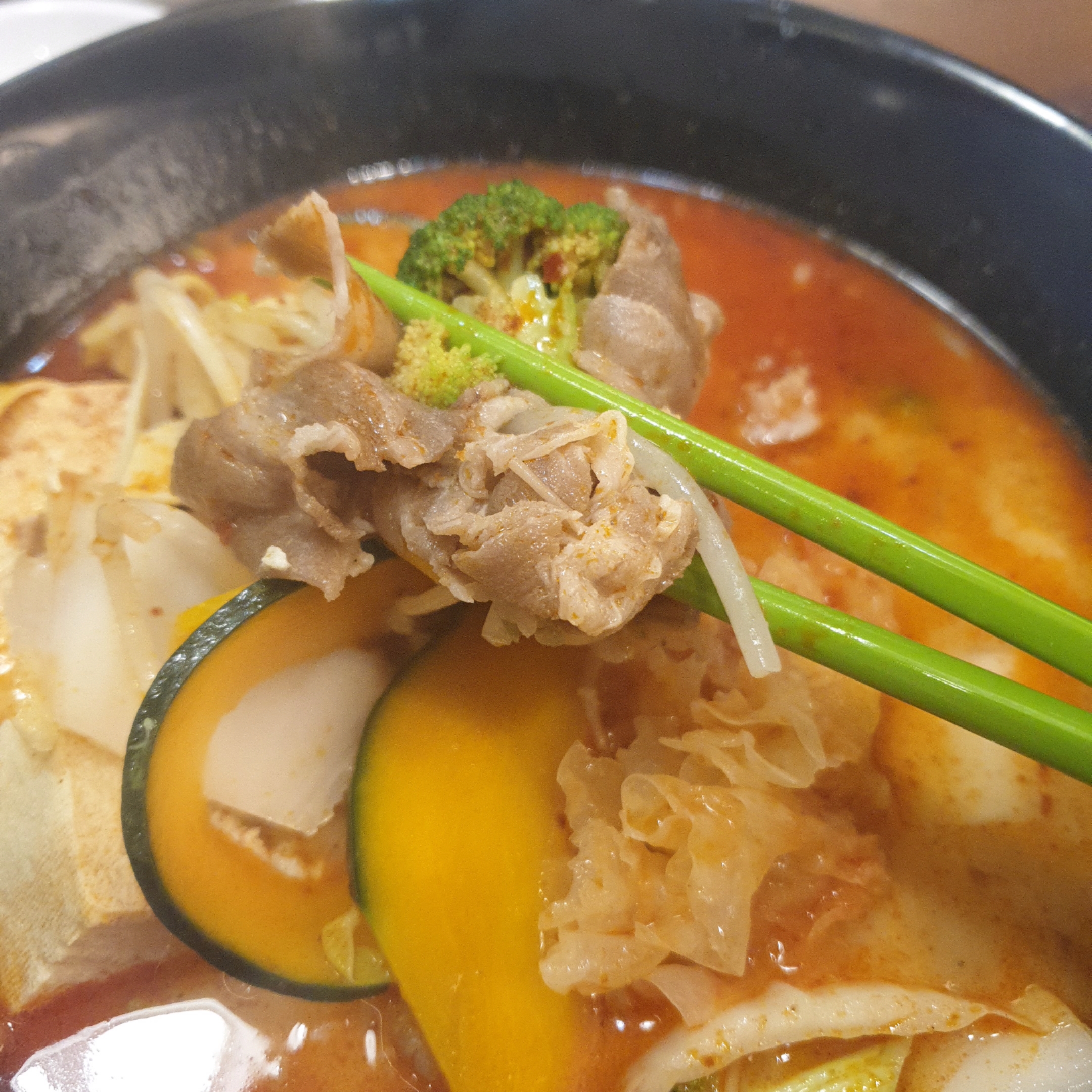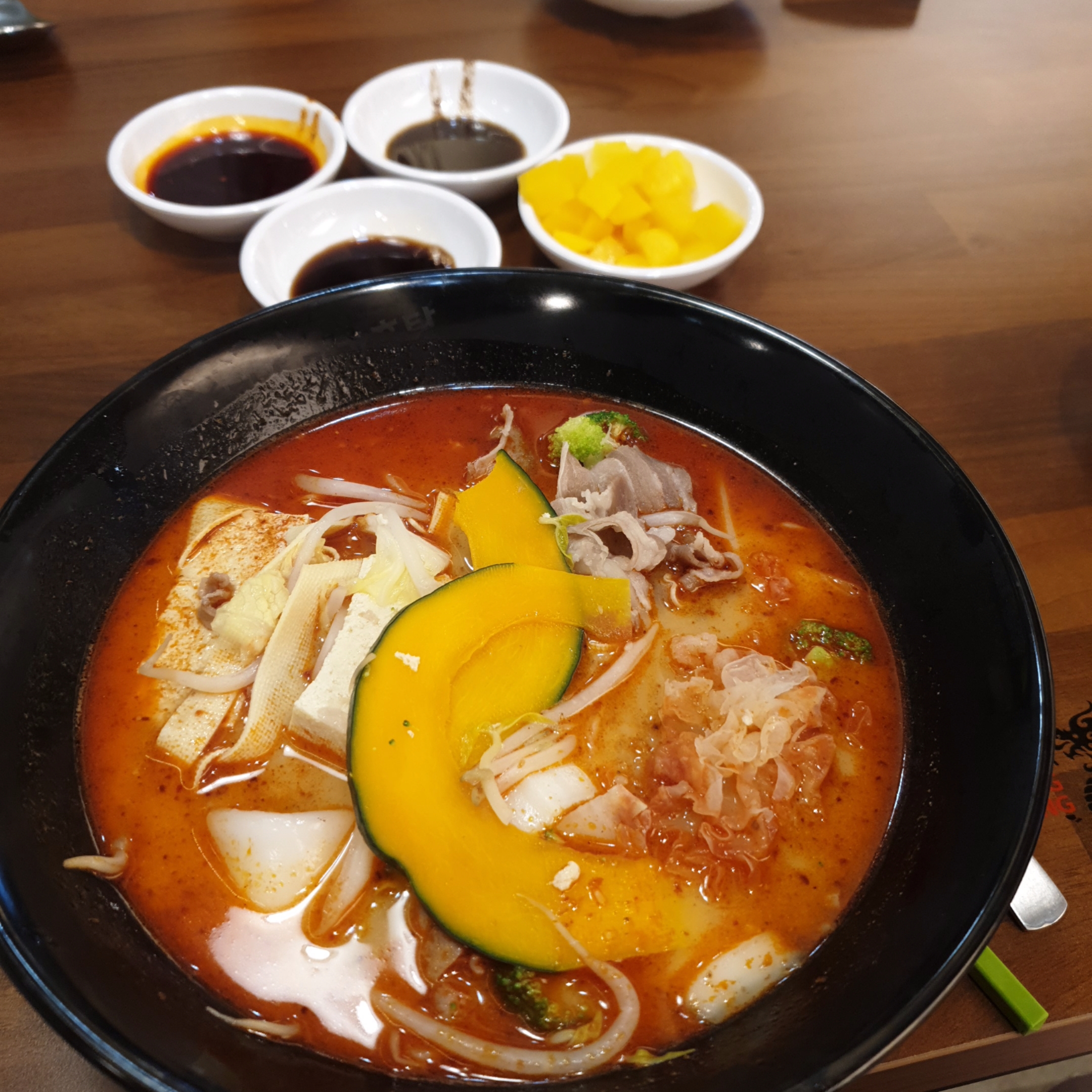 전 양고기로 했고, 각종 야채들과, 매운맛은 신라면보다 살짝 맵게 했던 것 같습니다.