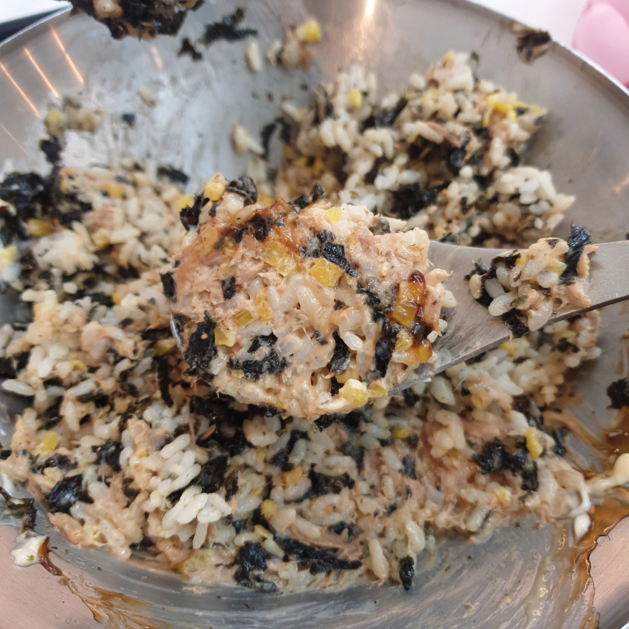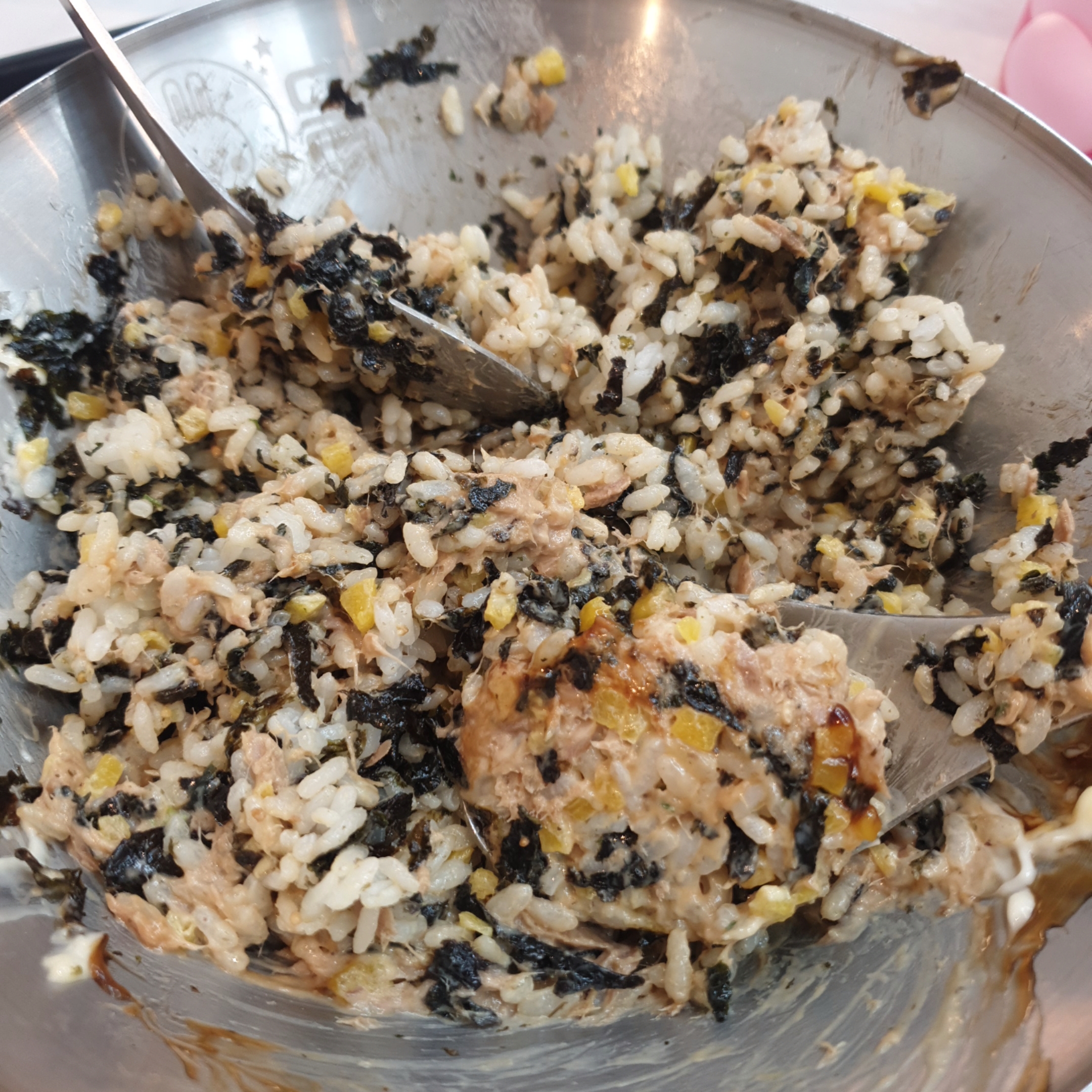 참치마요덮밥을 투움바 소스에 적셔먹으면.