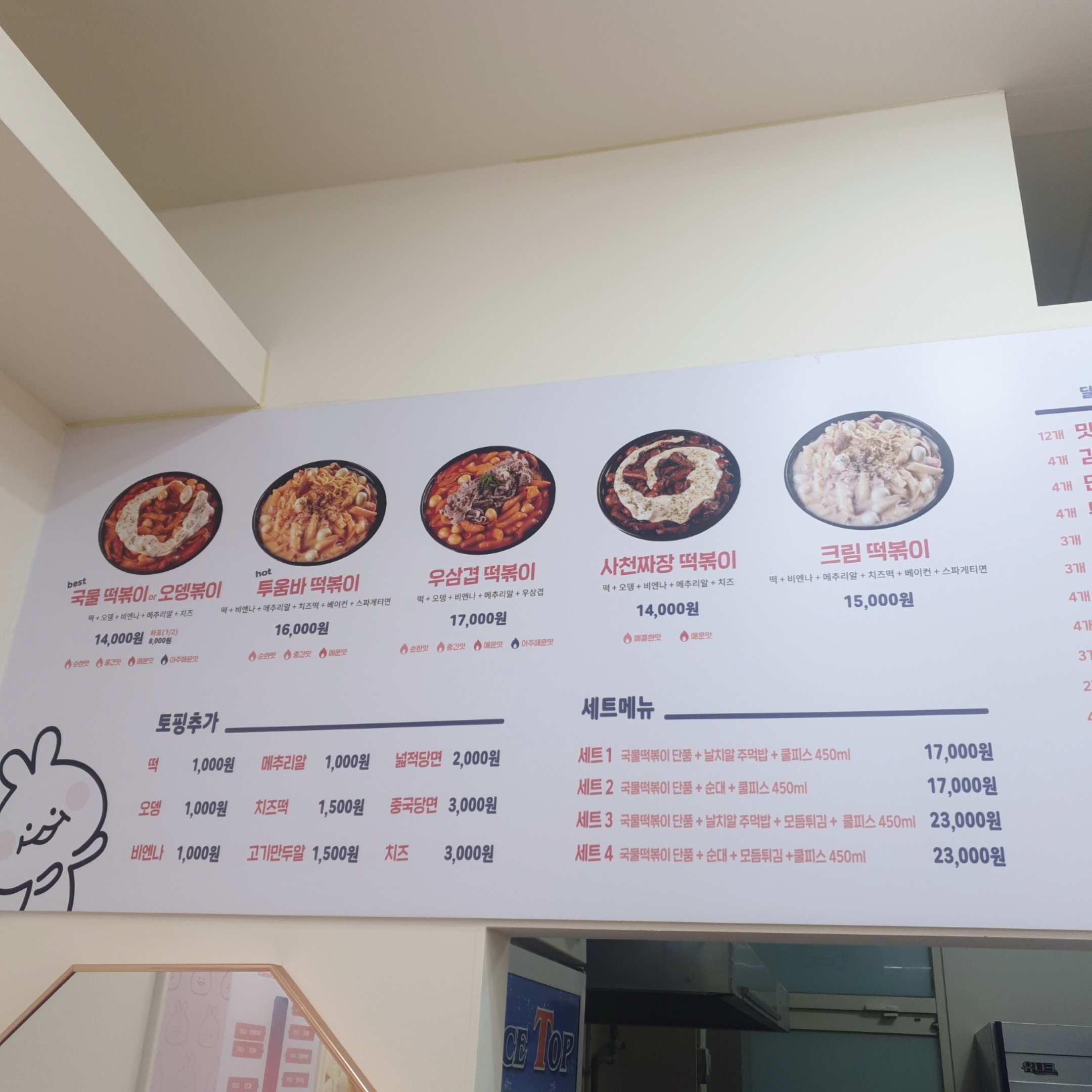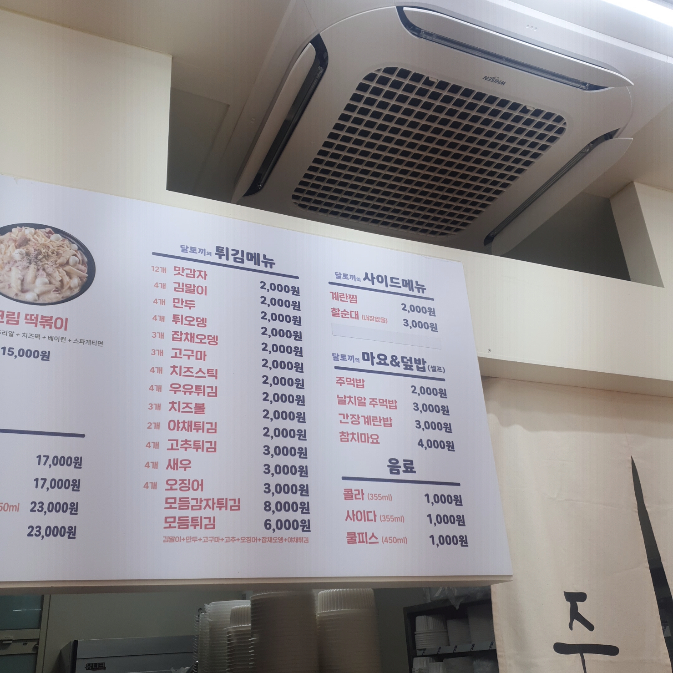 달토끼의떡볶이흡입구역 메뉴입니다.