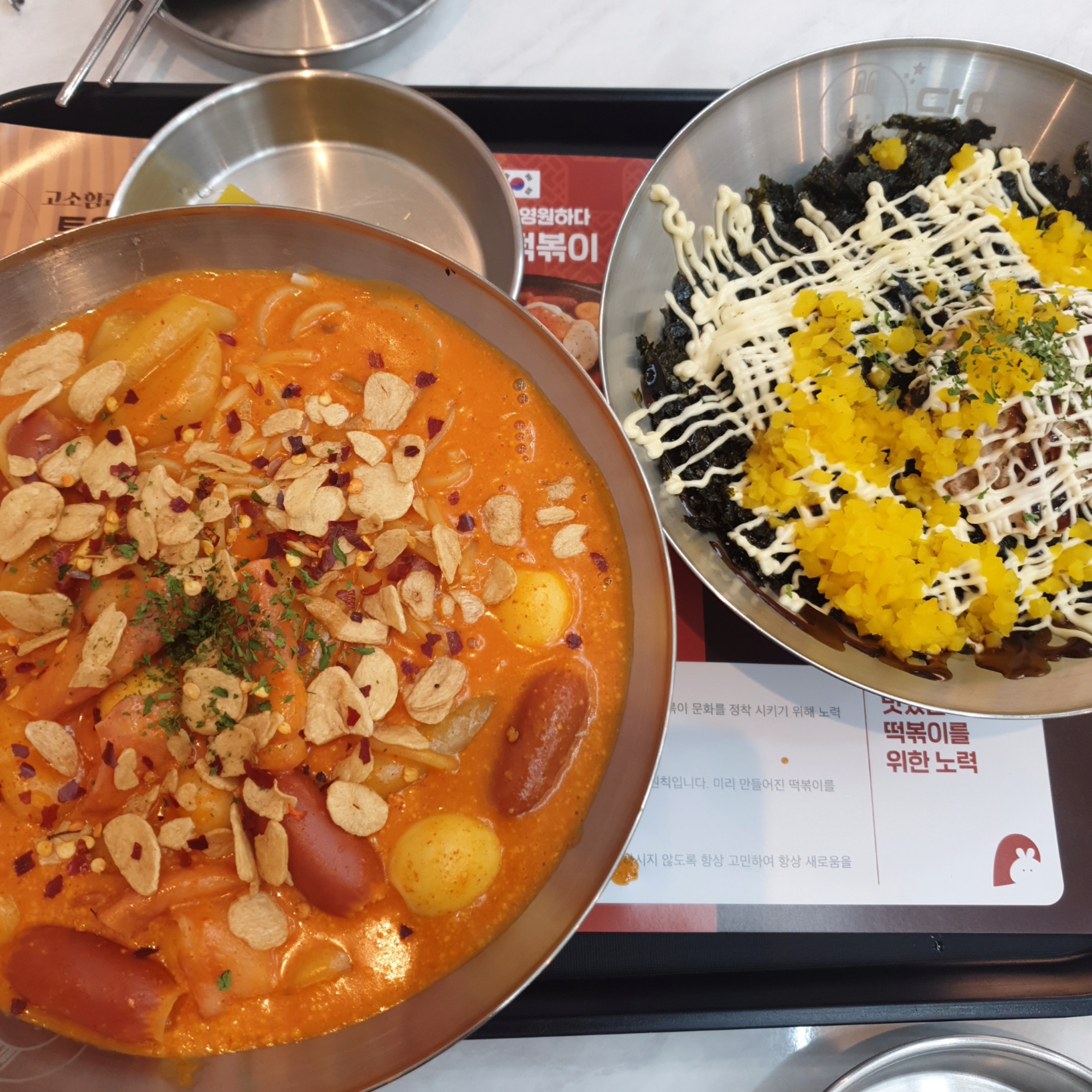 저는 위 메뉴 중에서 투움바 떡볶이 중간맛과,