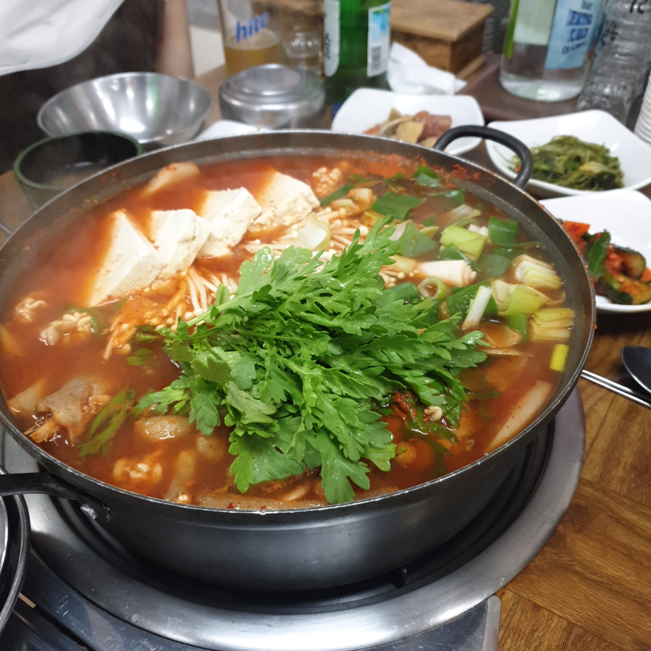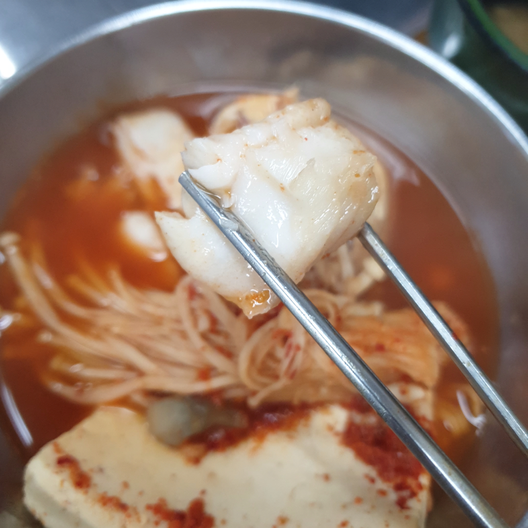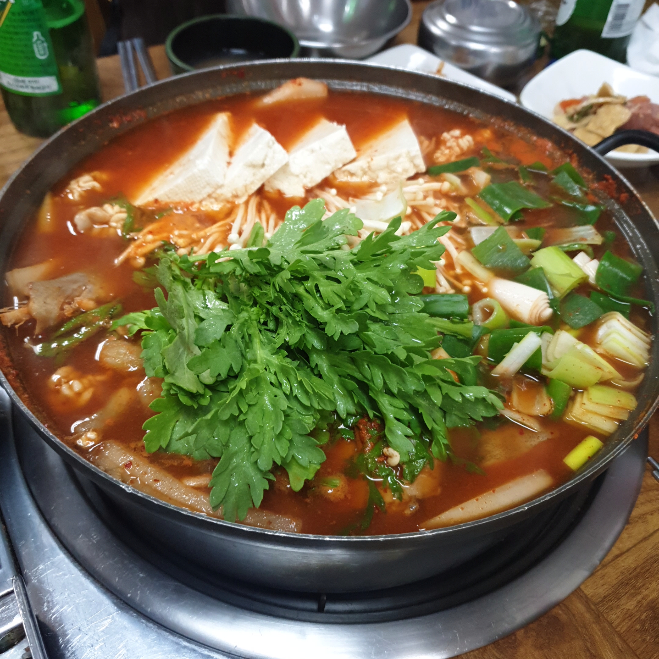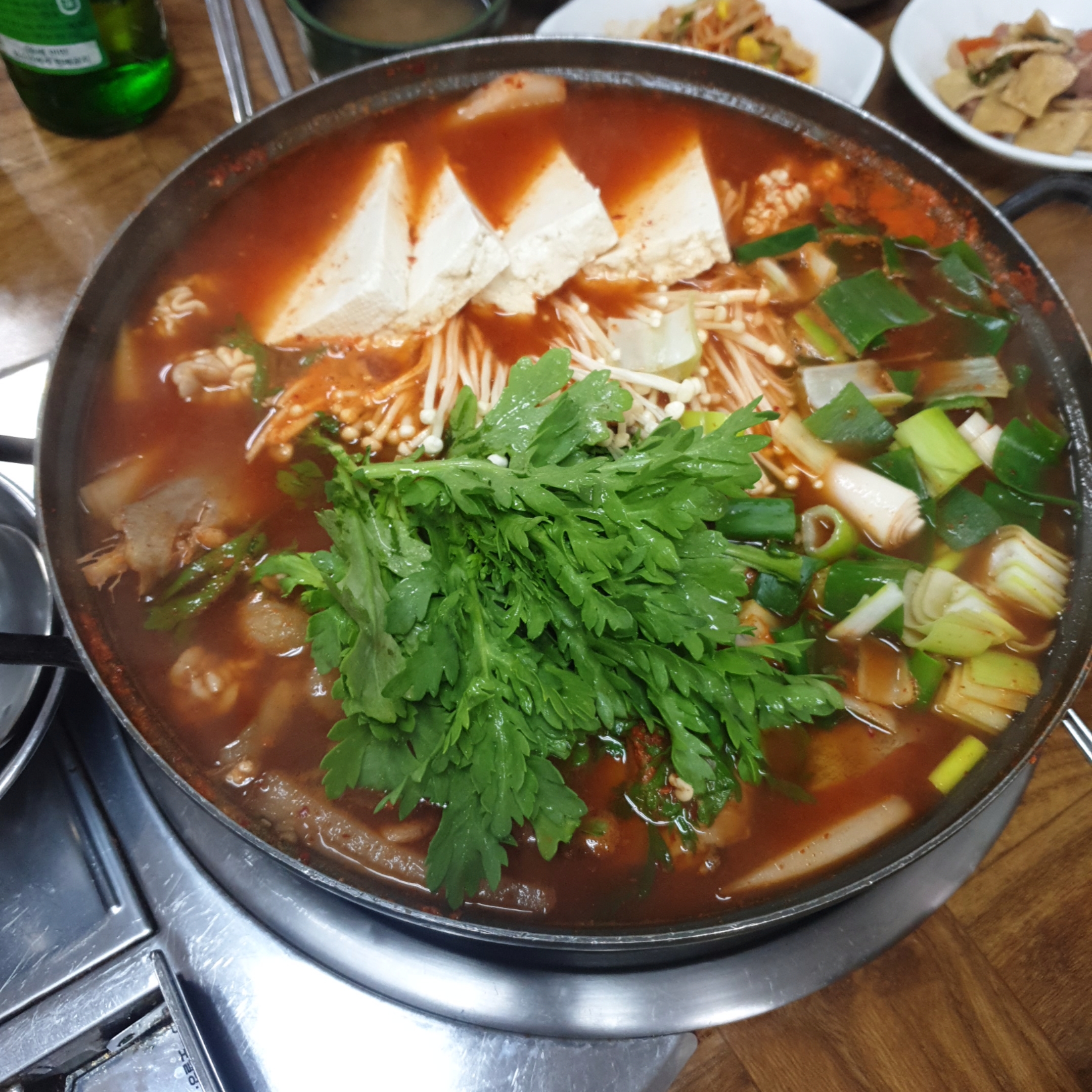 위에 잔뜩 올려진 쑥갓과 대파, 그리고 두부가 인상적이었습니다.