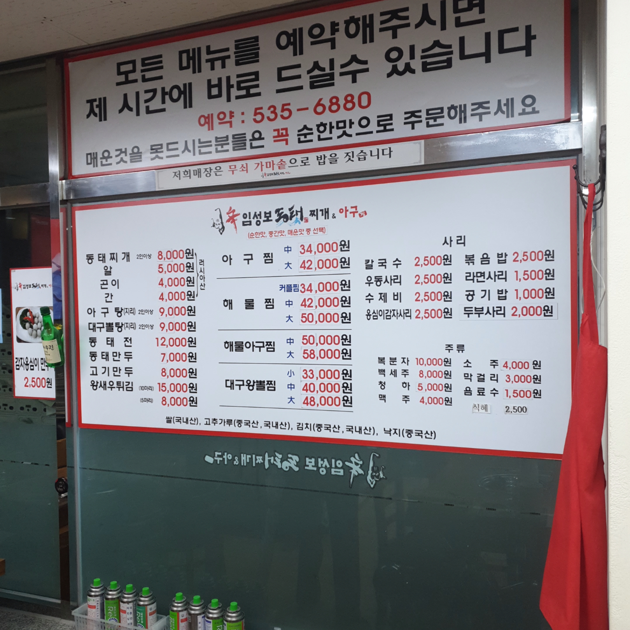 임성보동태찌개 메뉴입니다.