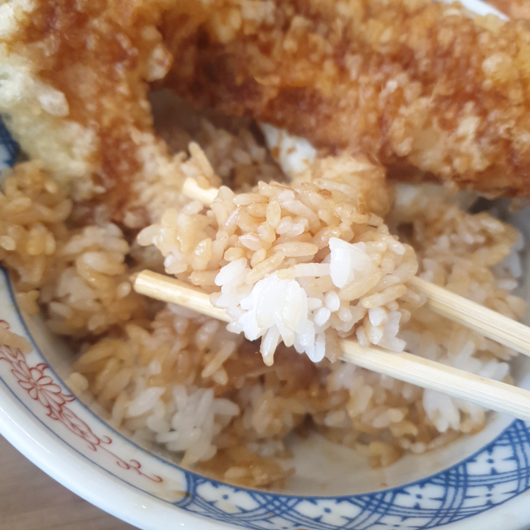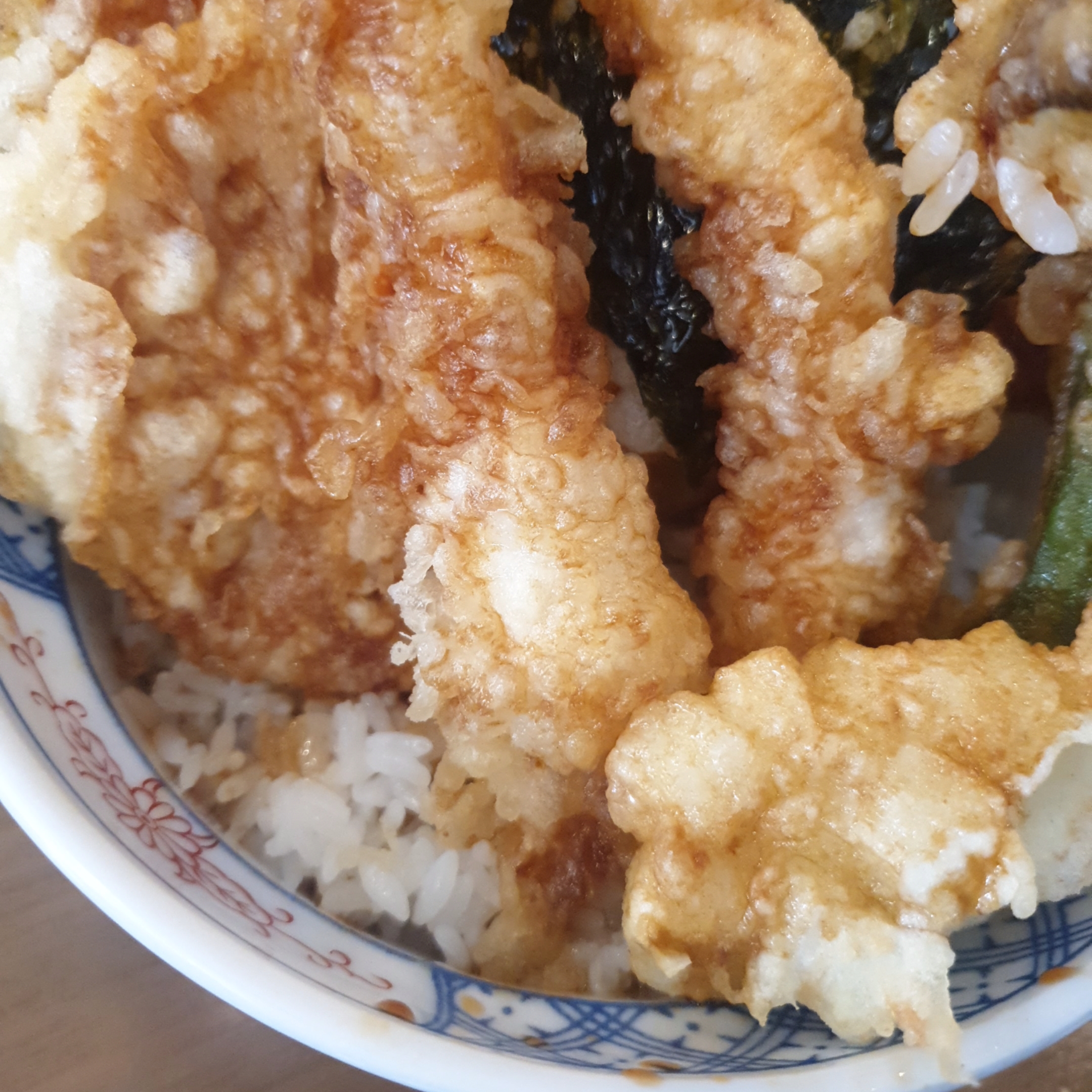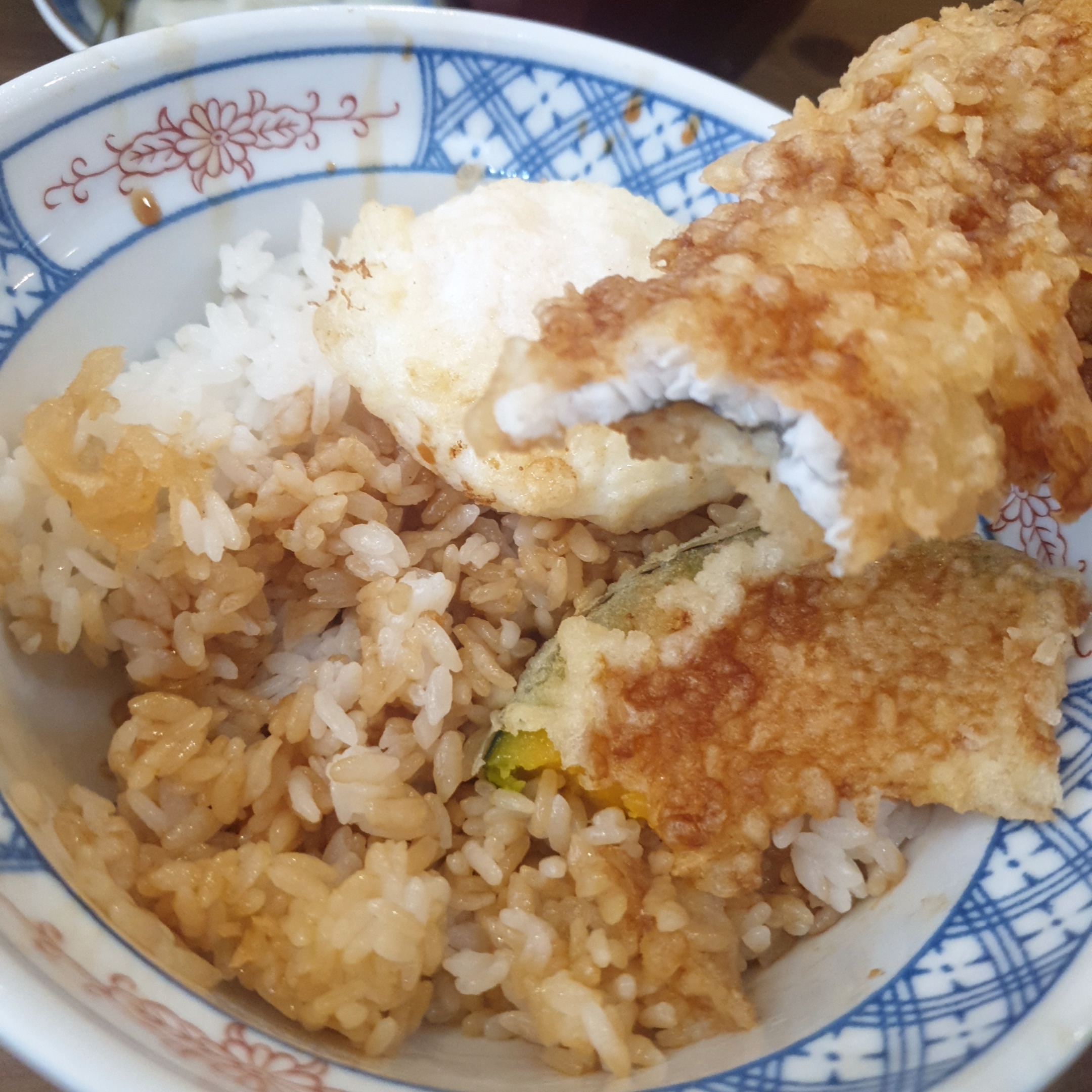 요령껏 튀김을 장국이나 반찬 그릇에 덜어놓고 하나씩 집어 먹었습니다.