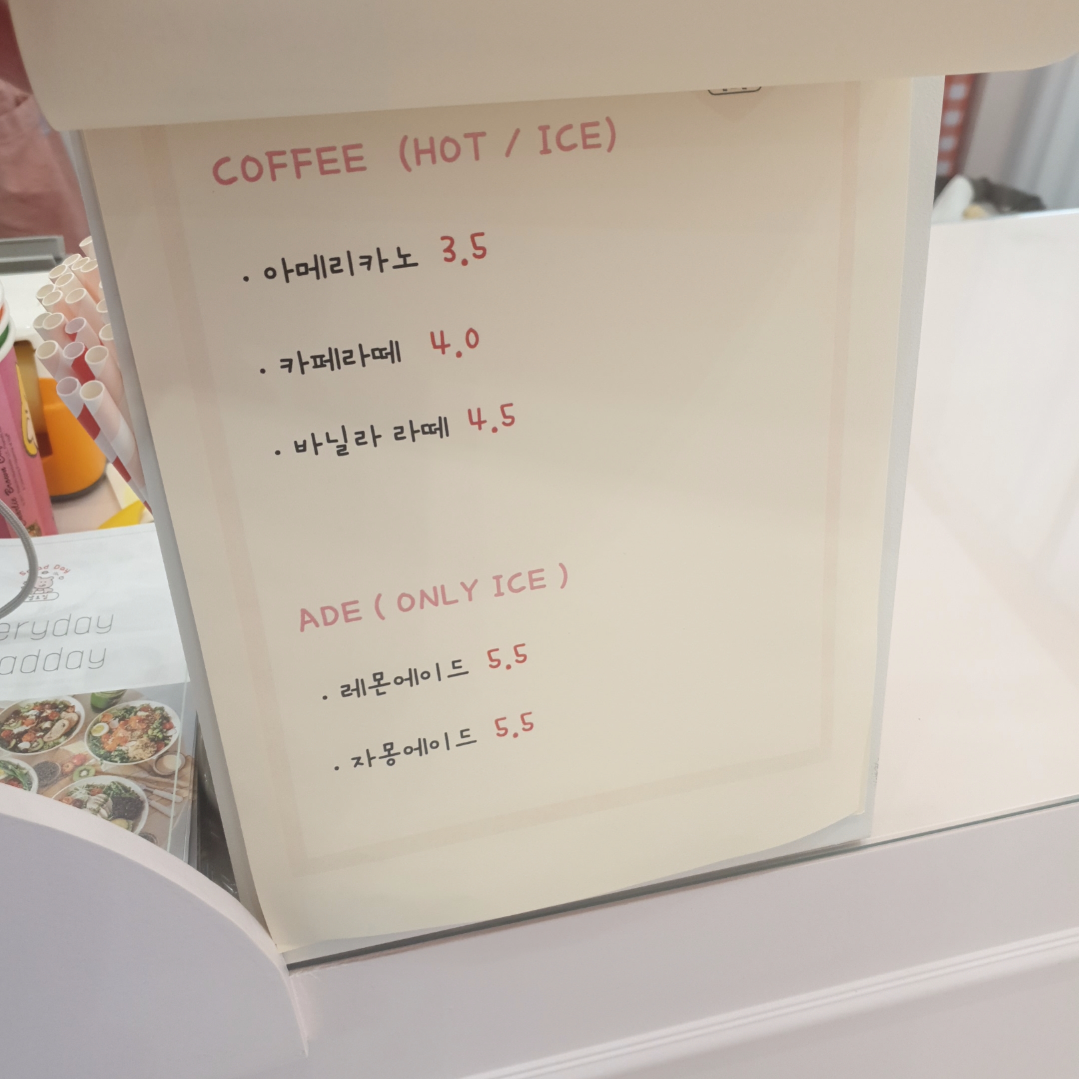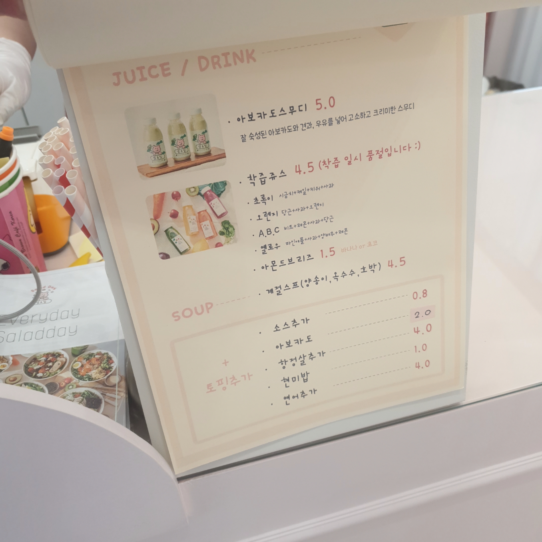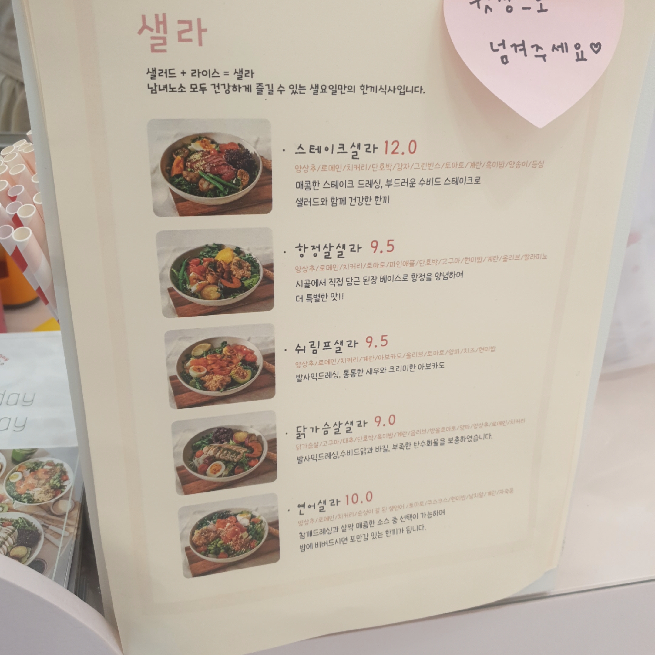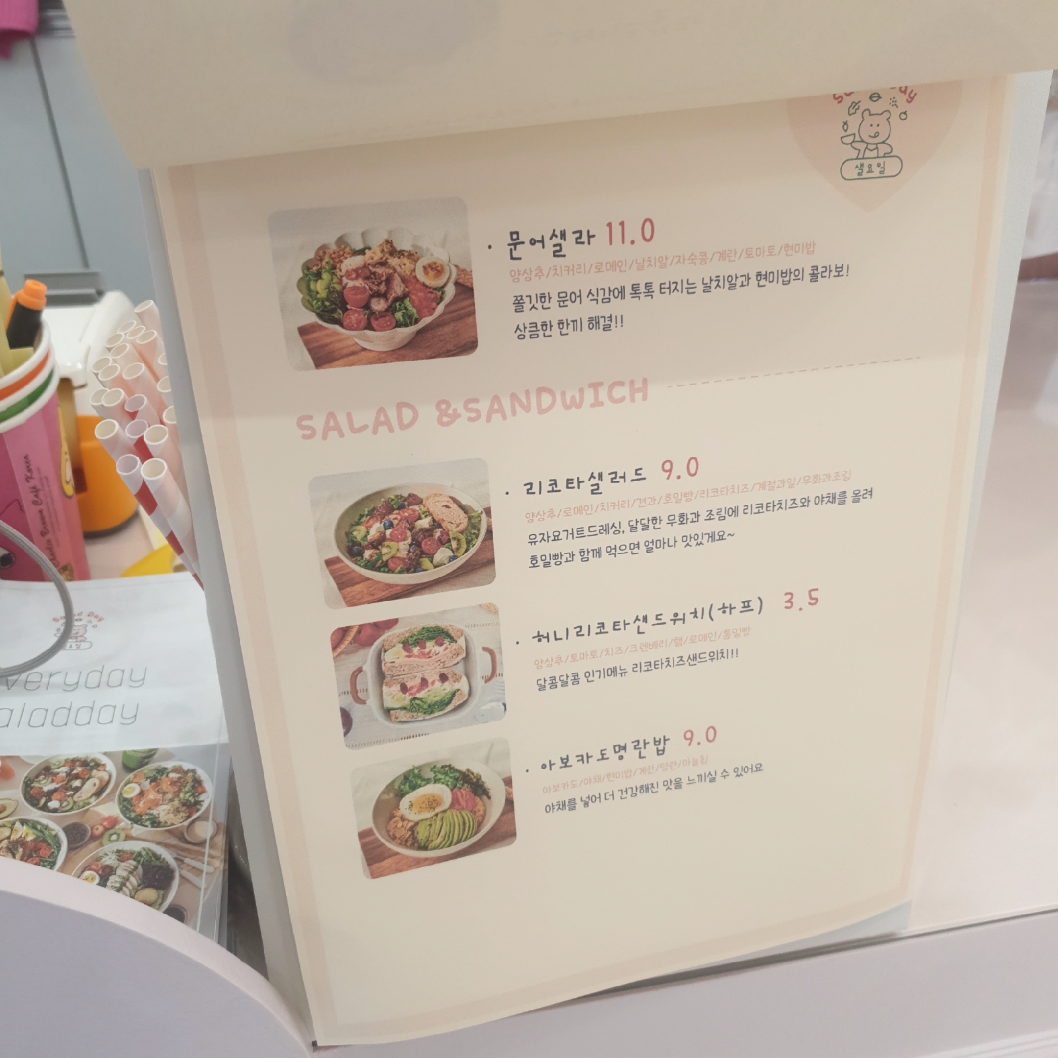 '샐라'라고 해서 샐러드에 밥이 들어간 메뉴가 있었는데, 한끼 든든하게 드시고 싶으시면 샐라가 적당한 선택일 듯 했습니다.