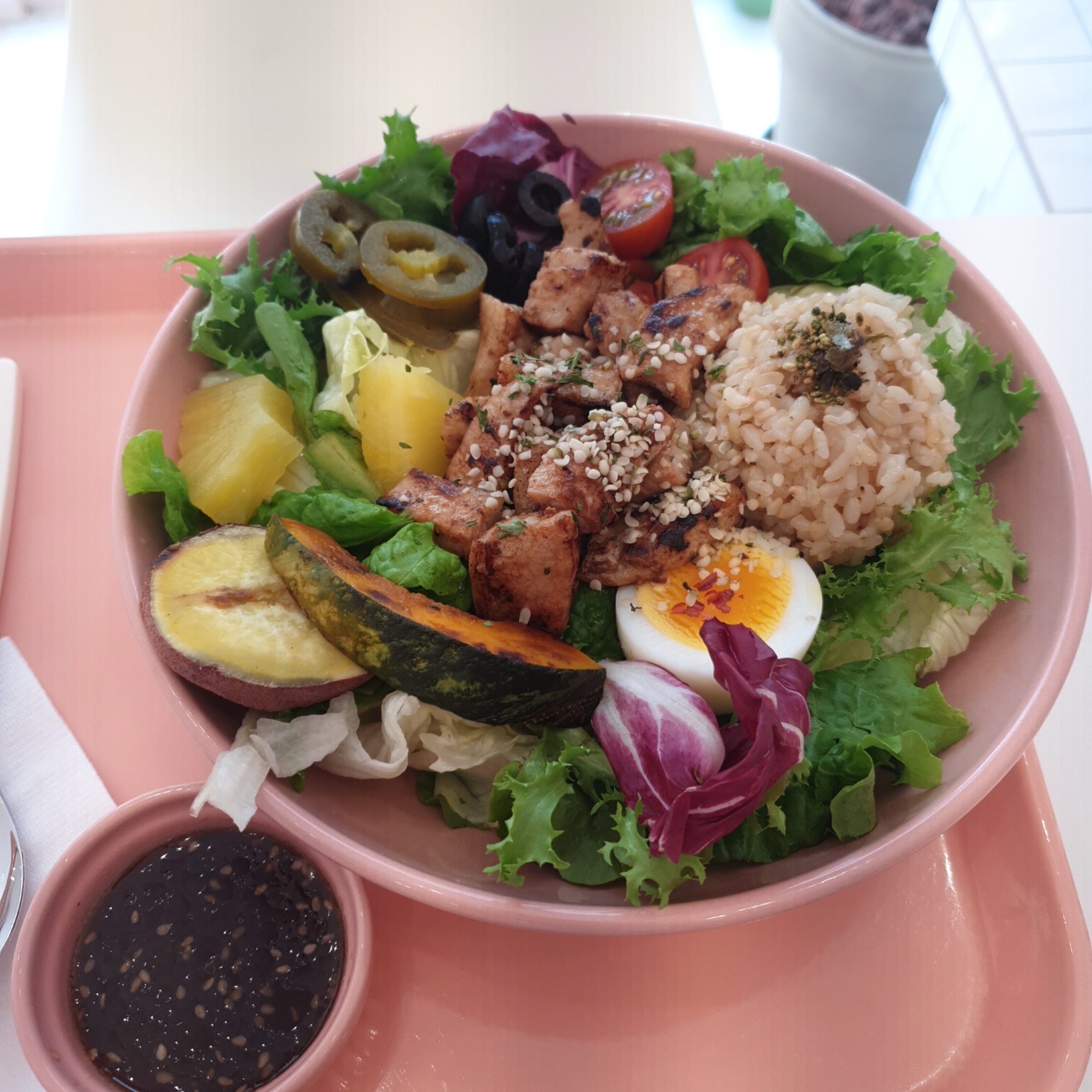 비건을 목표로... (결국 몇일만에 실패헀지만..ㅠ) 한다고 하니 샐러드 집에 가자며 데리고 간 곳인데, 가게 분위기도 핑크핑크 하고 깔끔했고, 무엇보다 음식이 맛있어서 마음에 들었었습니다.