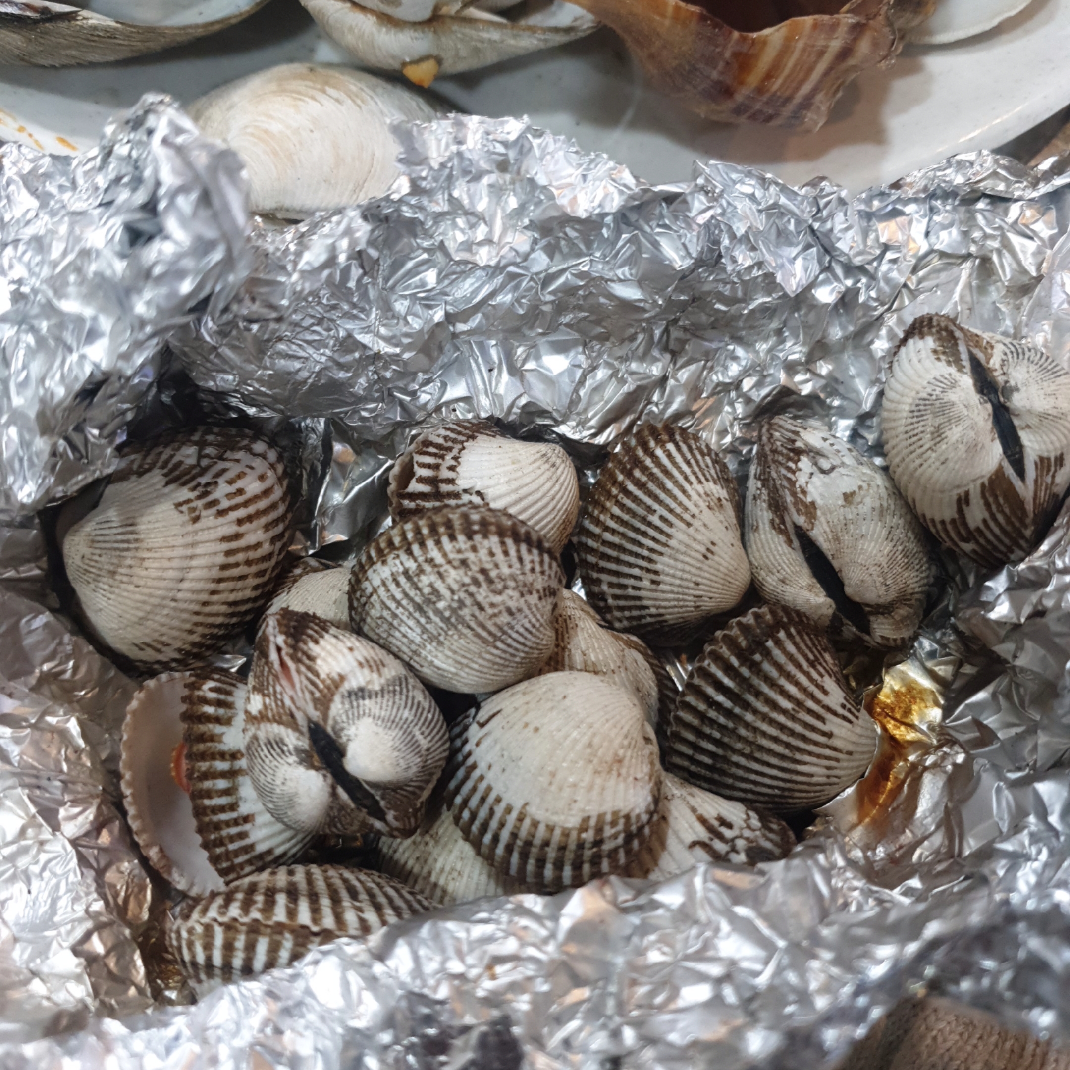 가리비와 소라 그리고 저게 코끼리조개인가요? 랑 은박지 안에는 꼬막들이 들어있었습니다.