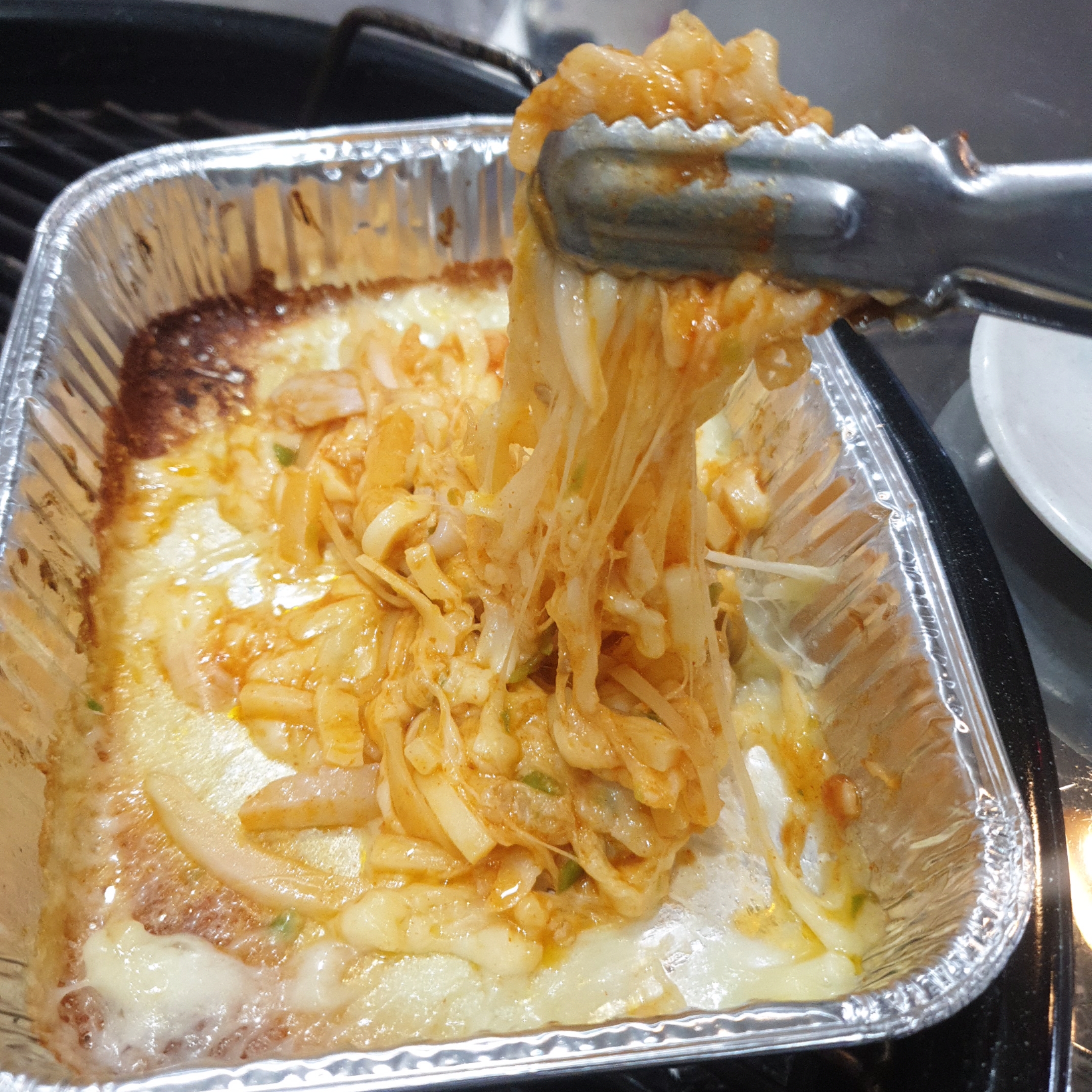 치즈에 초장양념 살짝 들어가서 새콤달콤매콤한 양념과 함께 쭉 늘어나는 치즈란.