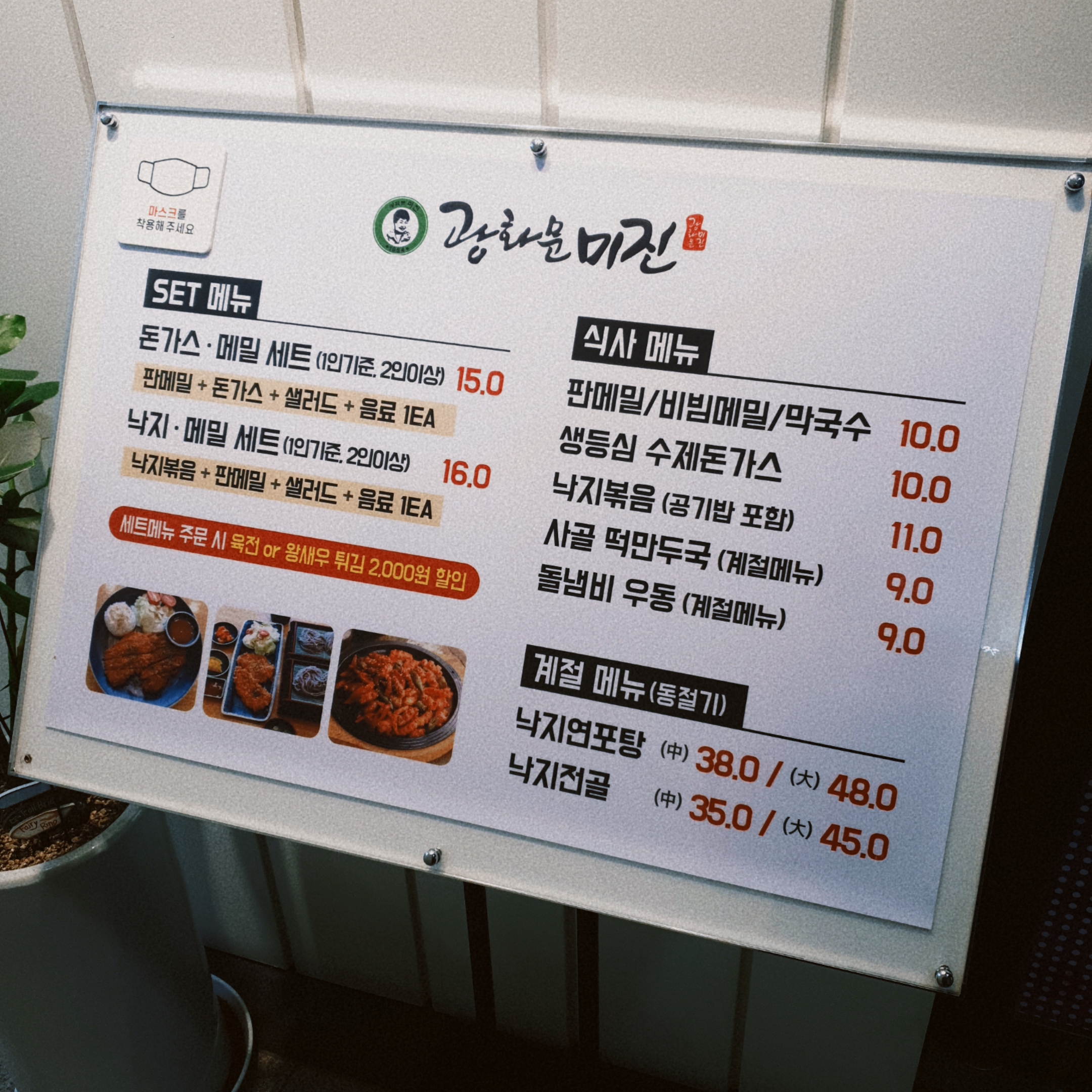 광화문미진 메뉴입니다.