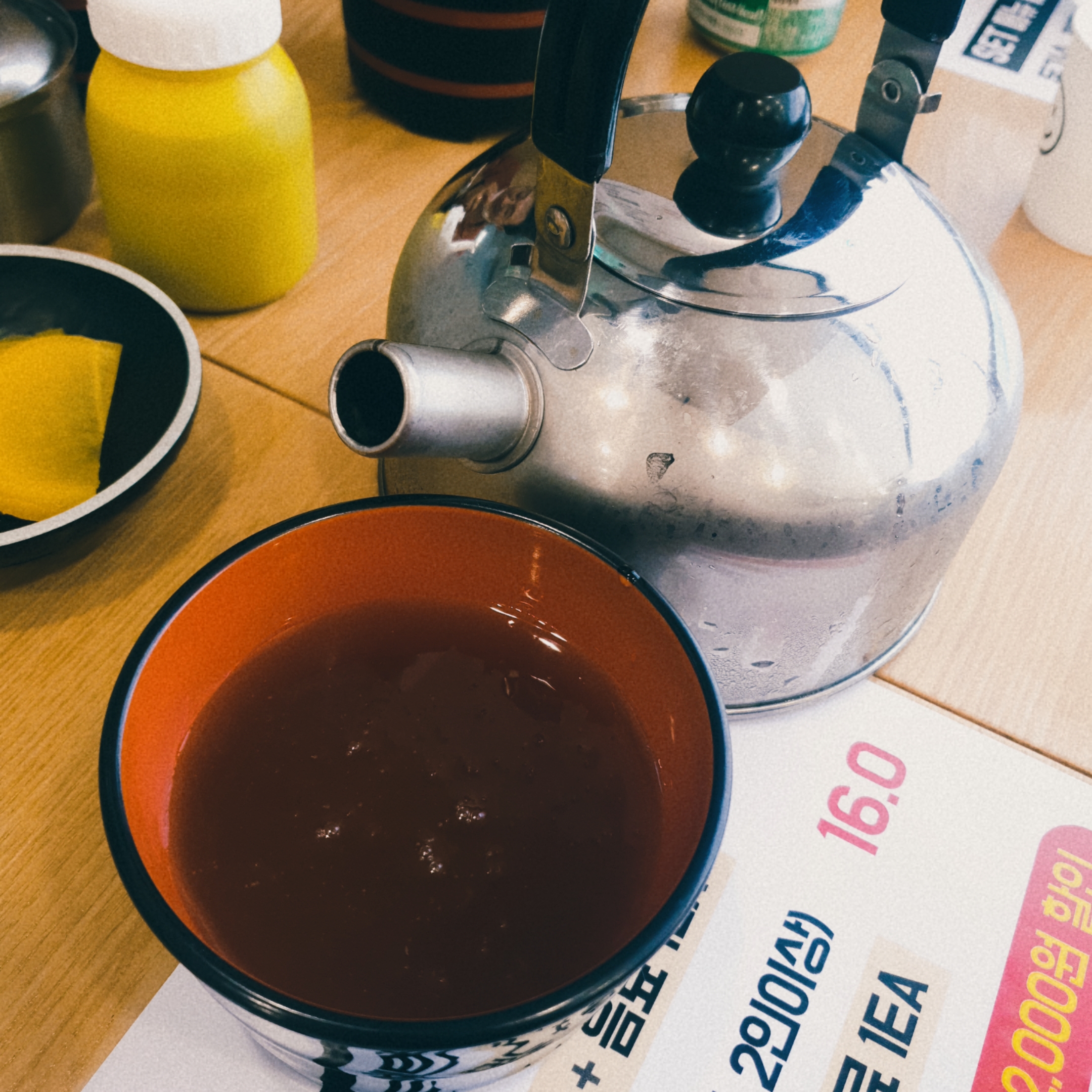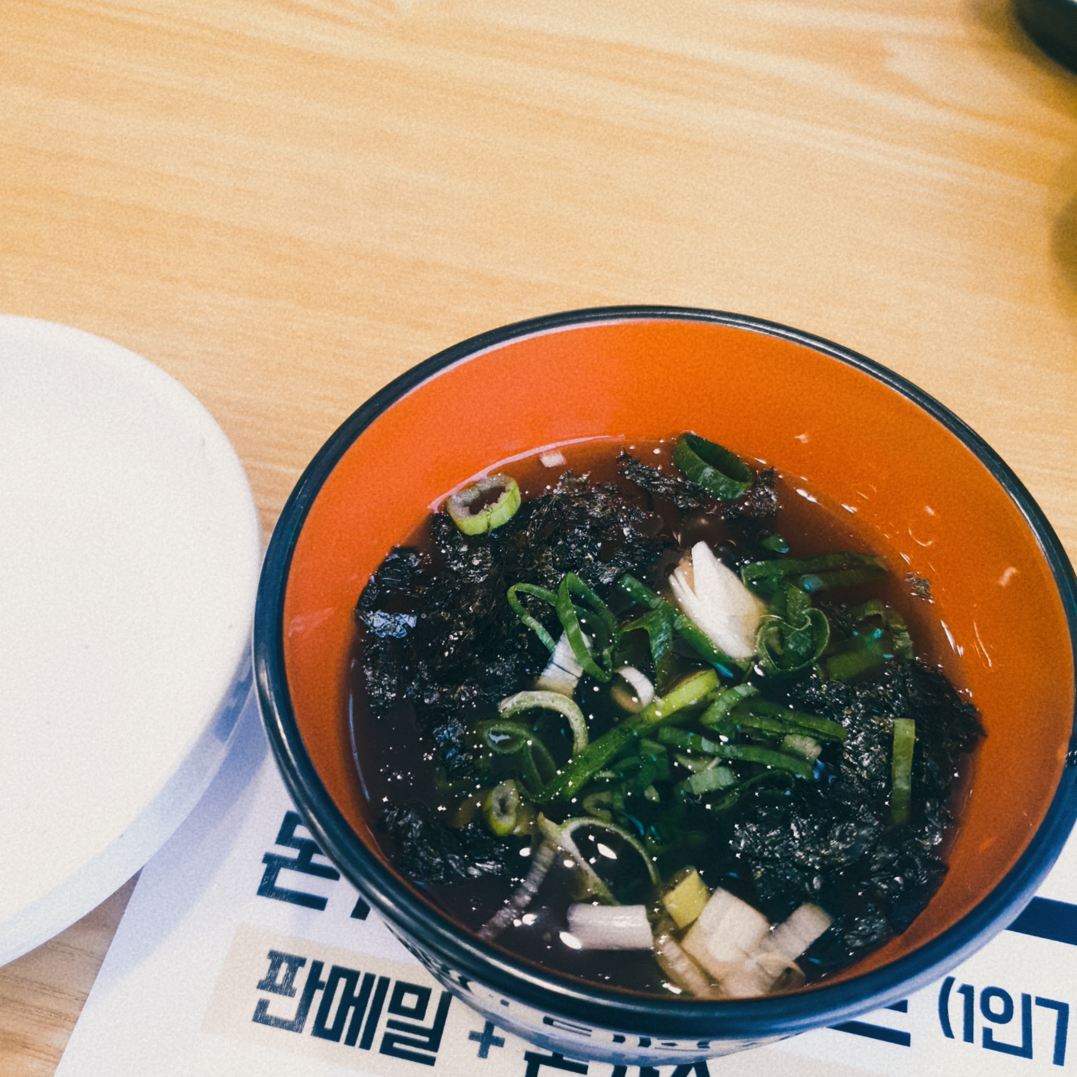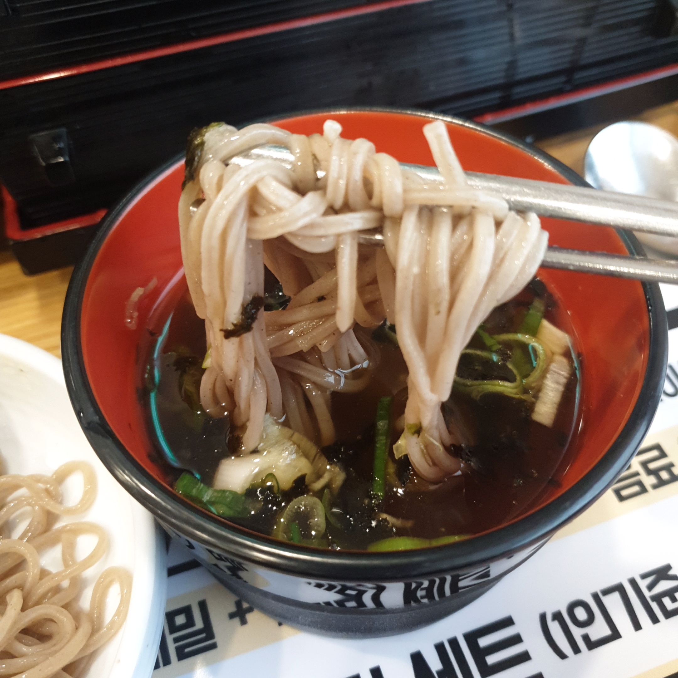 오리지날 메밀국수 육수에 살짝 고춧가루나 김치 향이 섞인 맛이었는데,