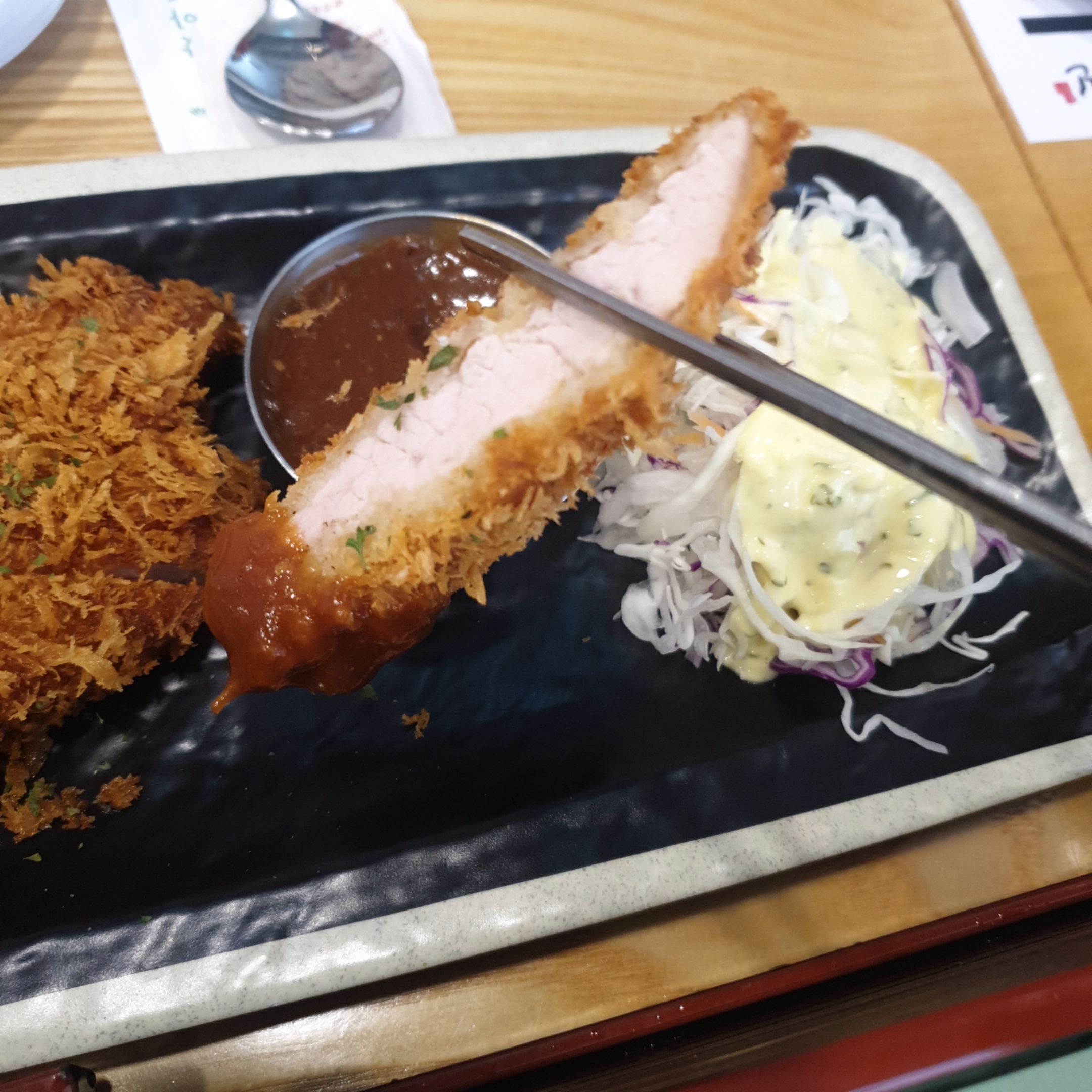 돈까스 두께 대부분을 튀김옷이 아니라 고기가 차지하고 있어서, 육향 아주 진하게 나는게 좋았습니다.
