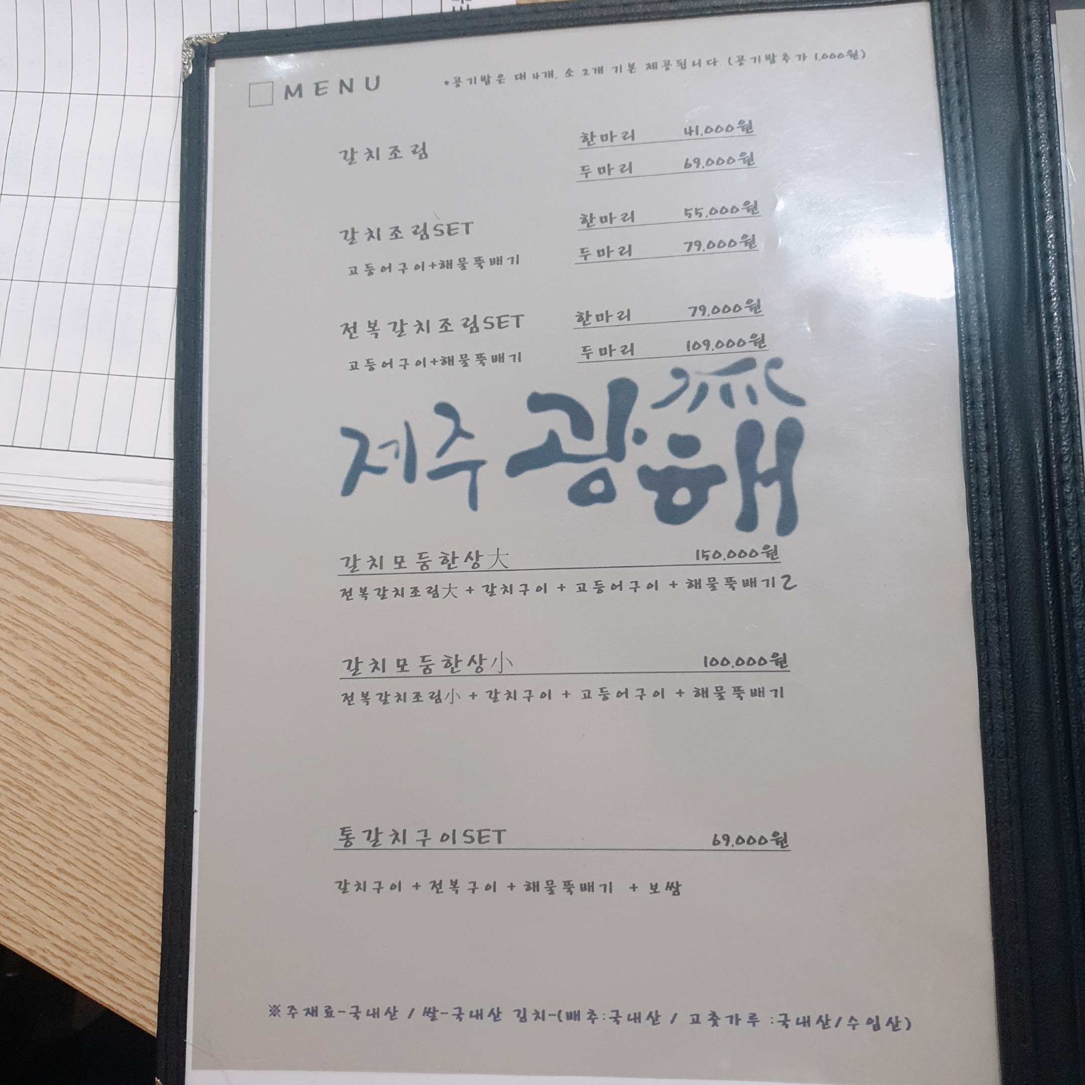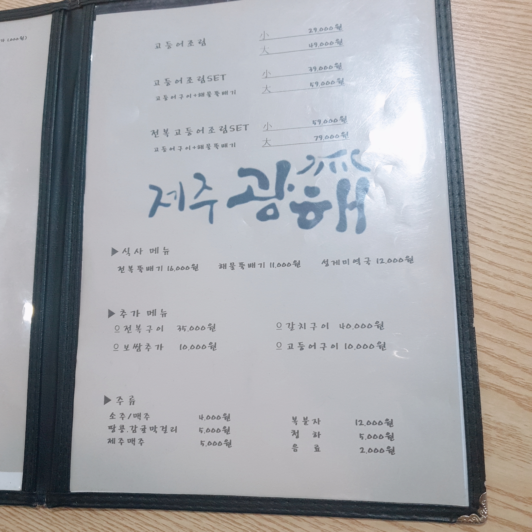 제주광해 메뉴입니다.