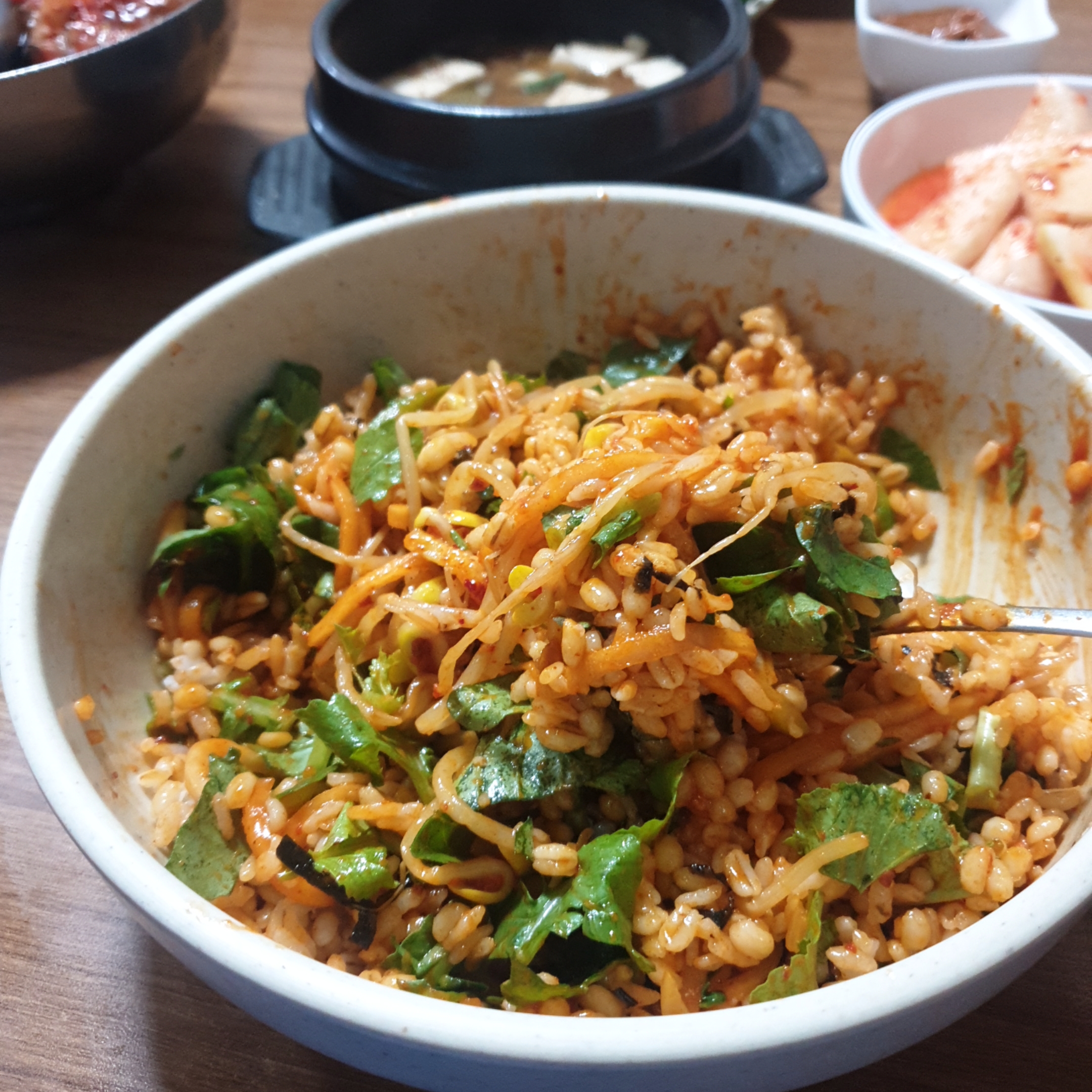 중간에 무생채랑 콩나물의 아삭아삭한 식감이 좋았고, 저 감칠맛나는 양념과 함께 기름의 고소함까지!