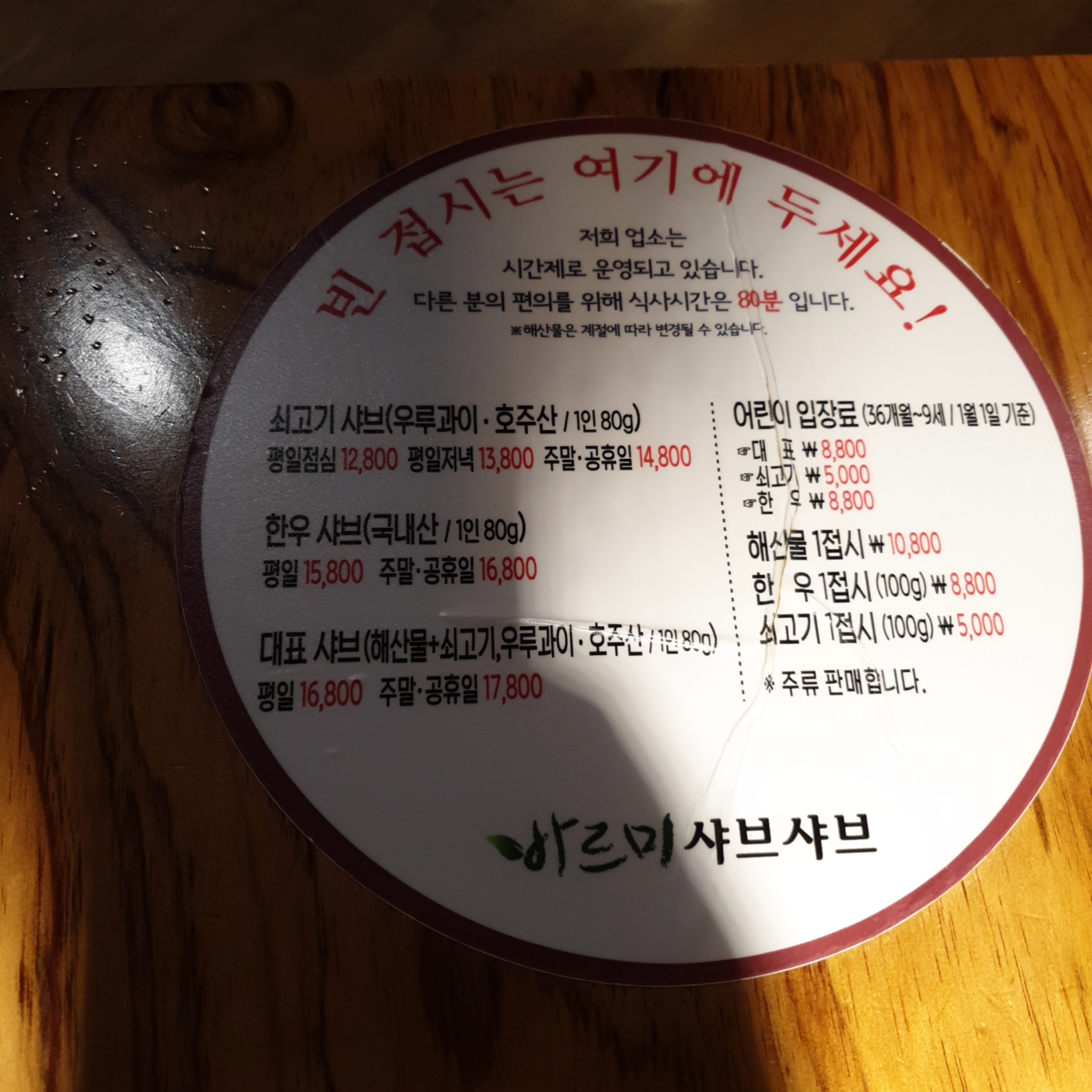 저는 평일 저녁에 가서 쇠고기샤브 2인 먹었습니다.
