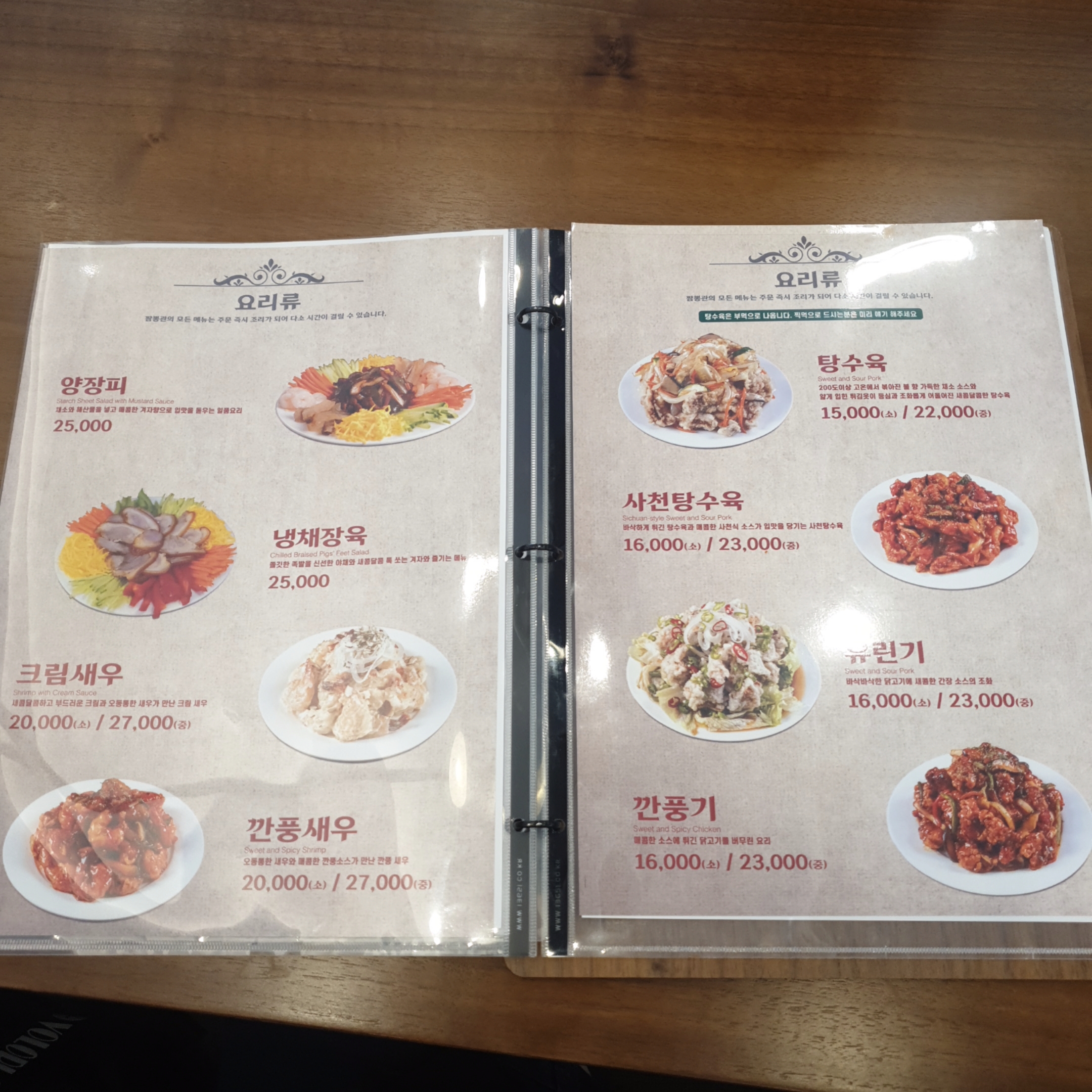 짬뽕관 메뉴입니다.