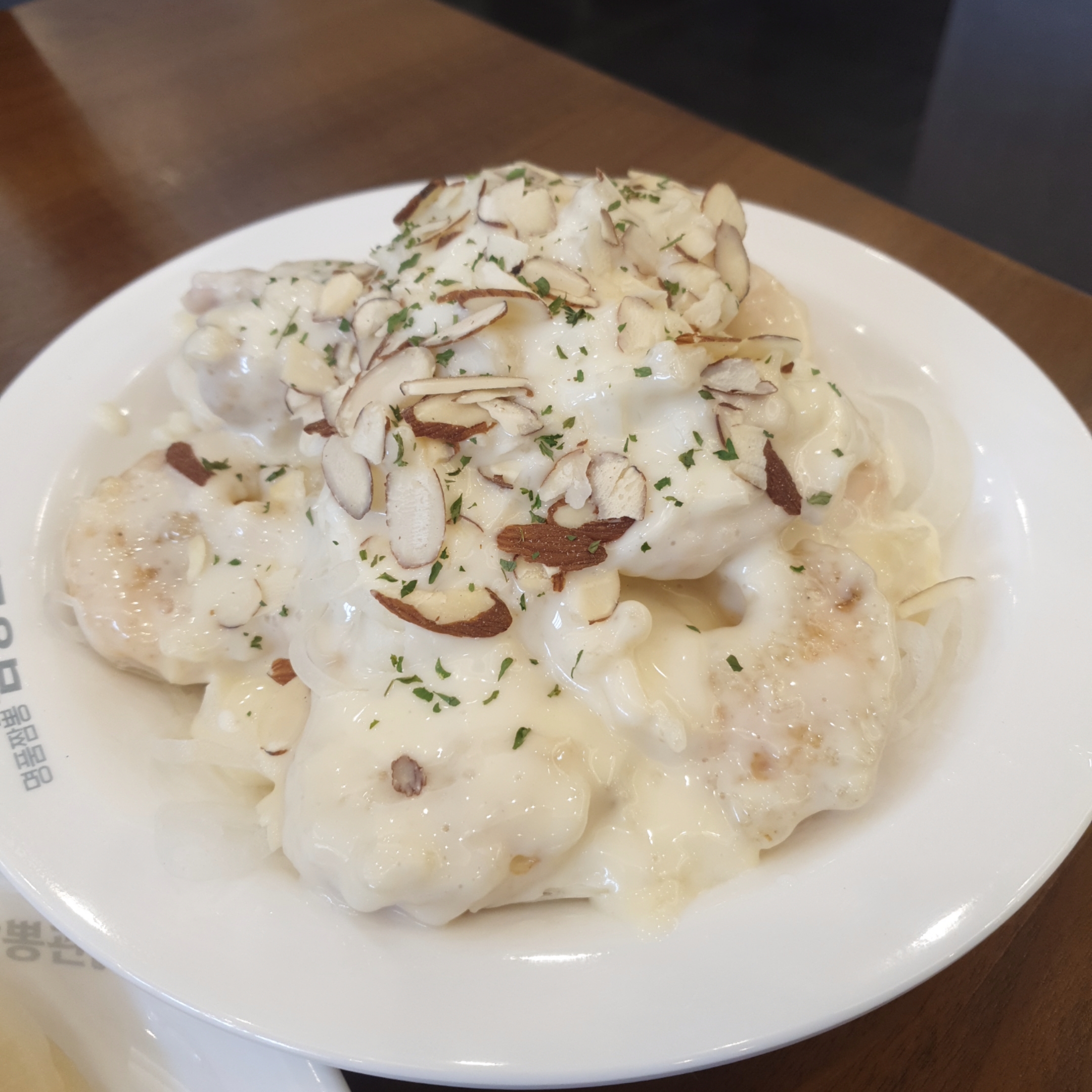 크림양념은 신 맛이 가미된 크림이었는데, 같이 간 지인이랑 말하길 저렇게 위에 듬뿍 얹어서 주는 것 보다, 밑에 크림을 깔고 위에 새우를 얹어서 찍어먹듯? 먹었으면 맛이 덜 자극적이고 맛있지 않았을까 하는 생각을 했습니다.