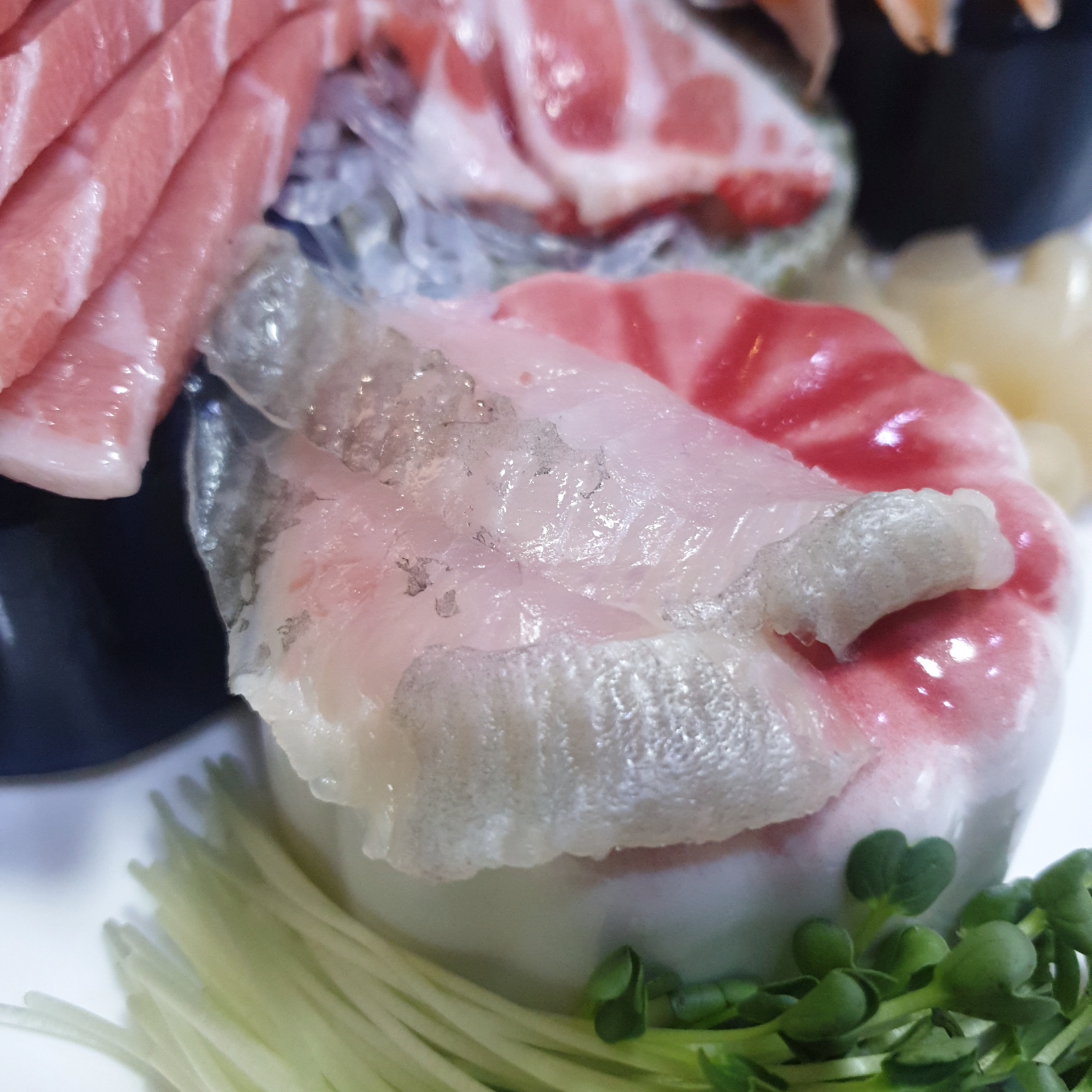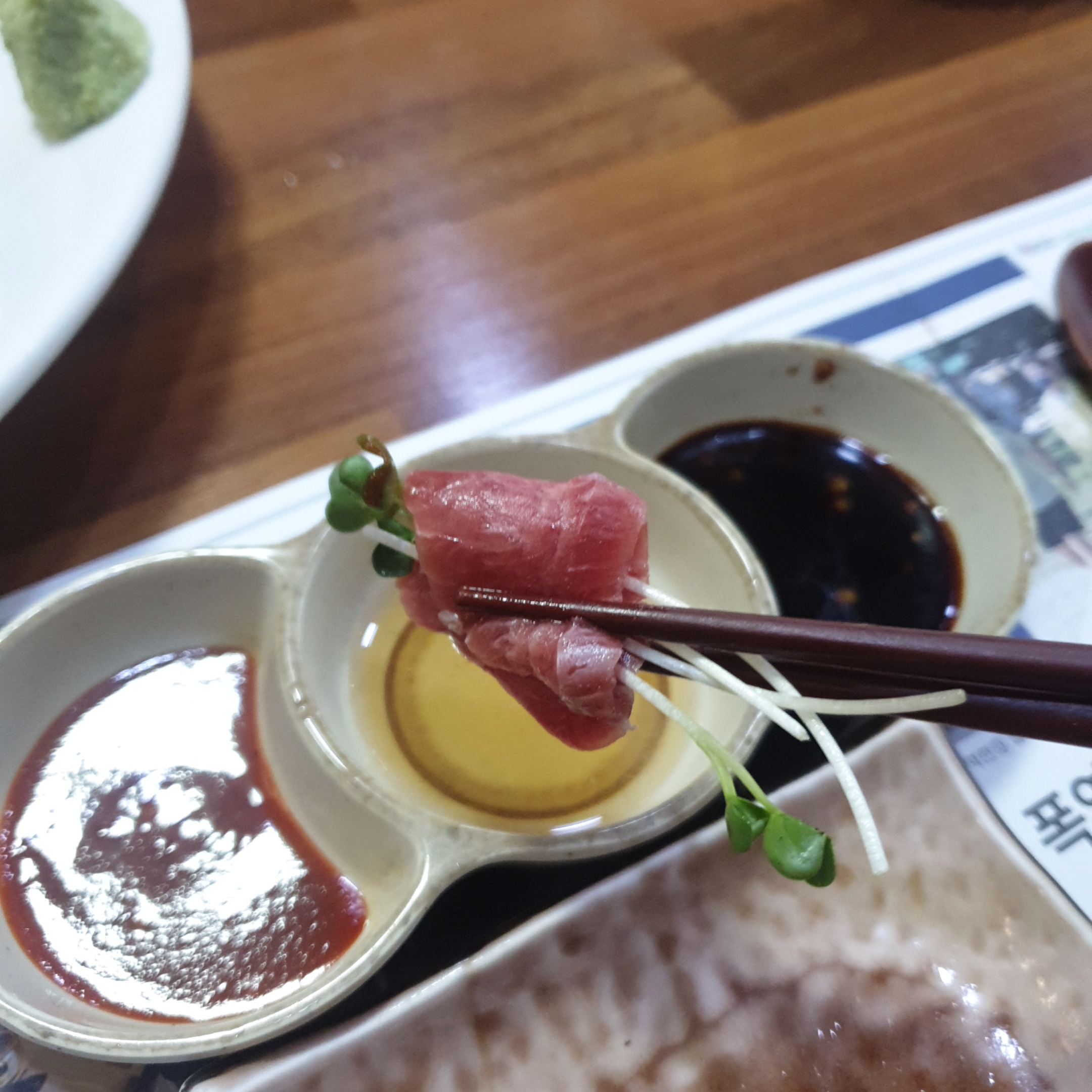 기름기가 딱봐도 보이시죠? 와사비 저것보다 더 얹어서 먹어도 매운향이 안느껴질 정도의 회였습니다.