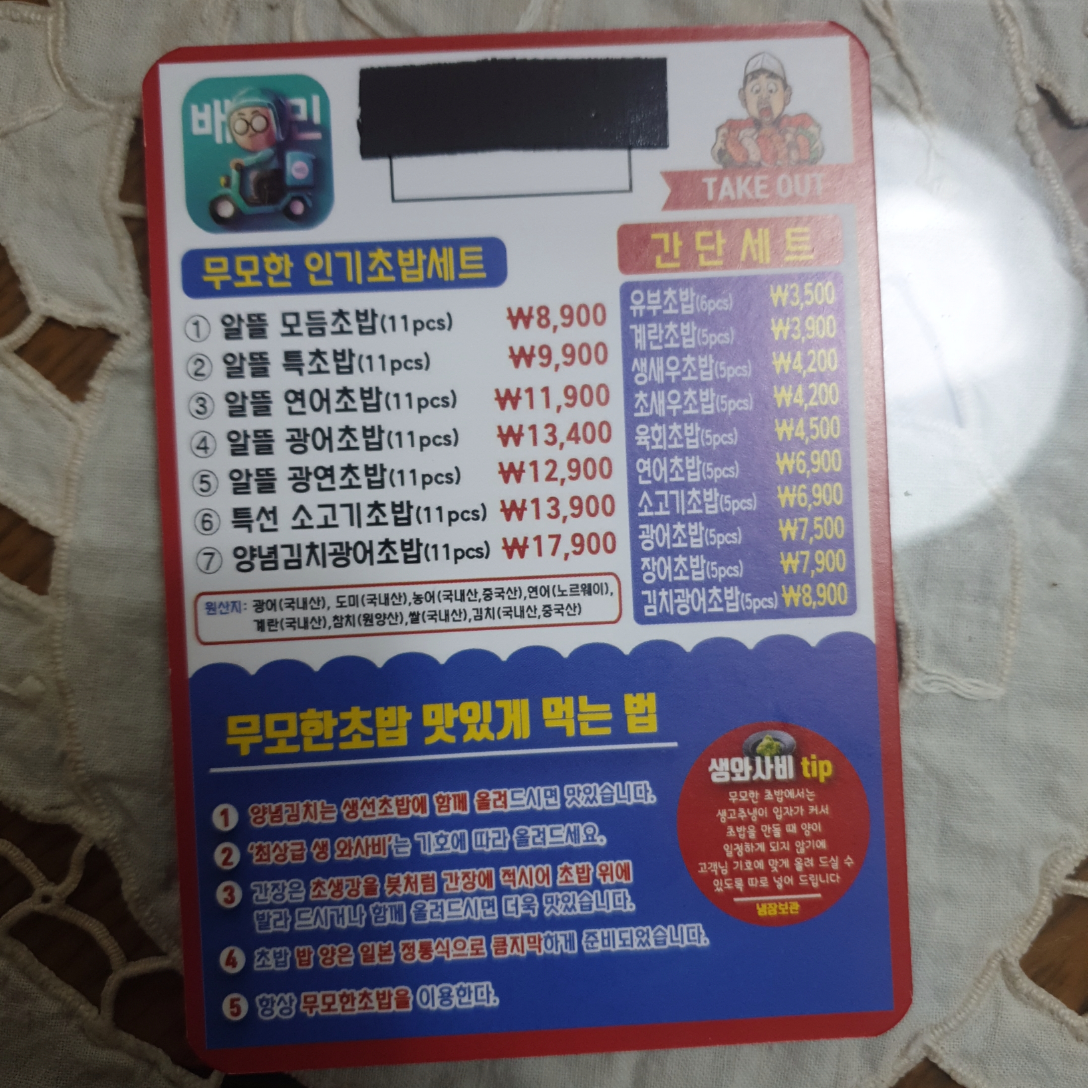 무모한초밥 메뉴입니다.