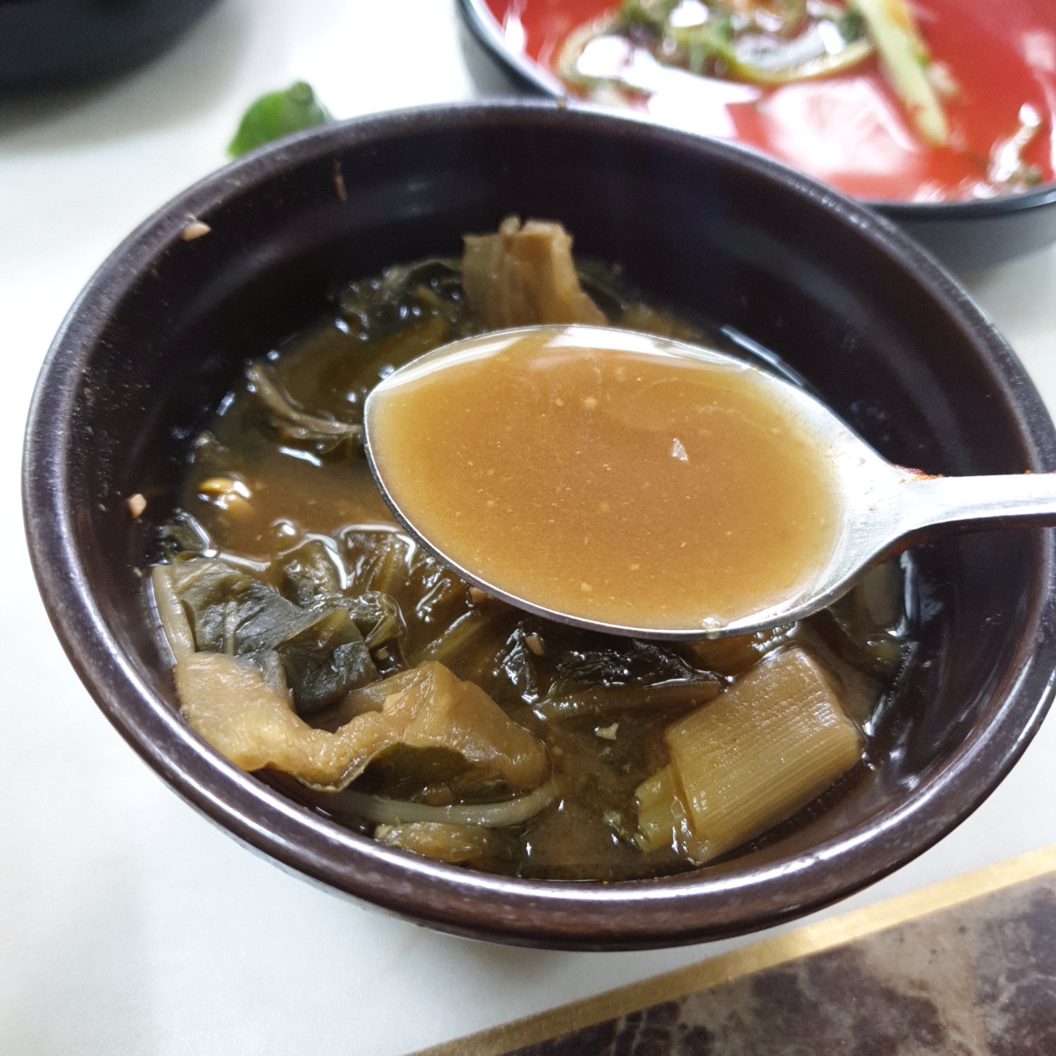 그리고 우거지 된장국도 주시는데, 저게 진짜 일품입니다.