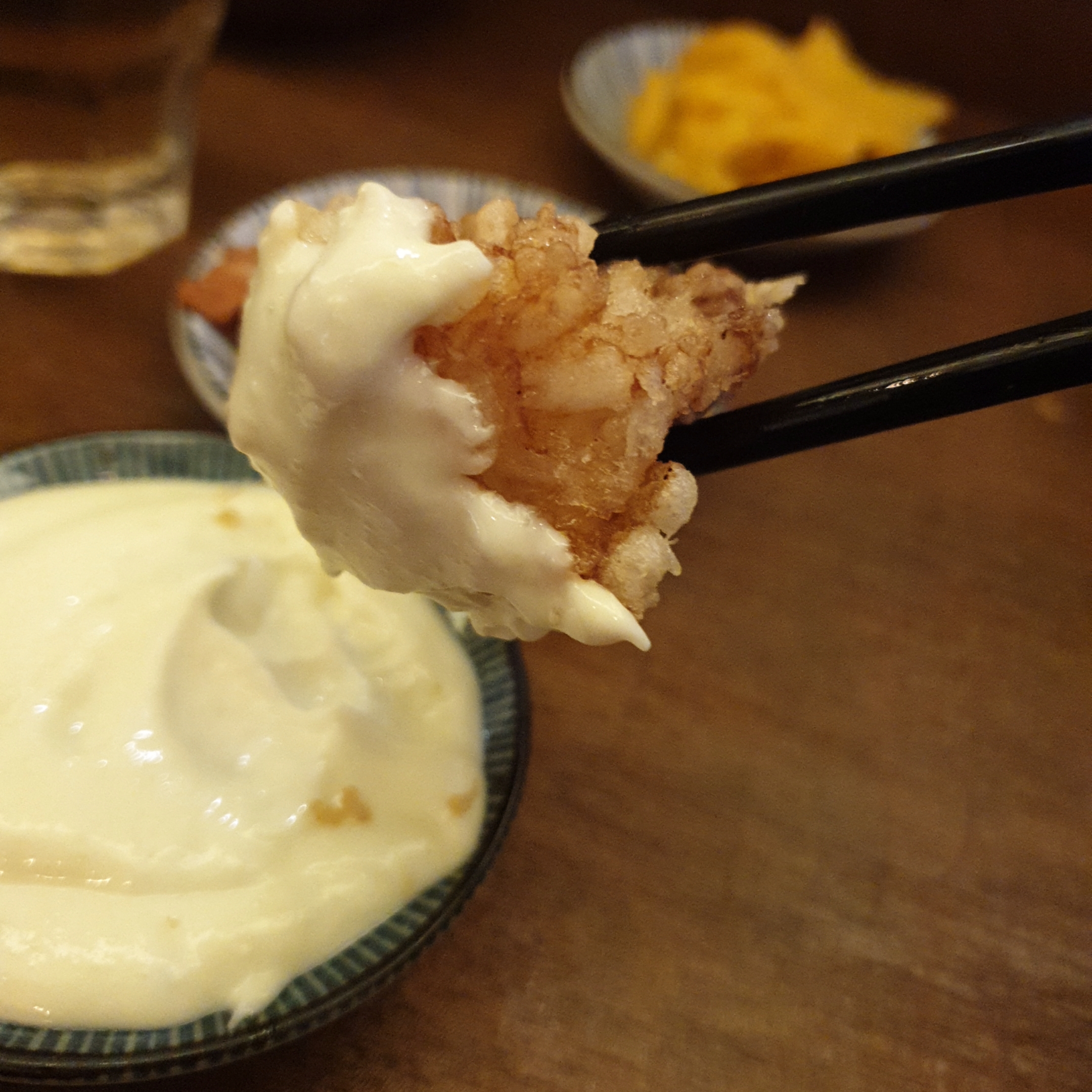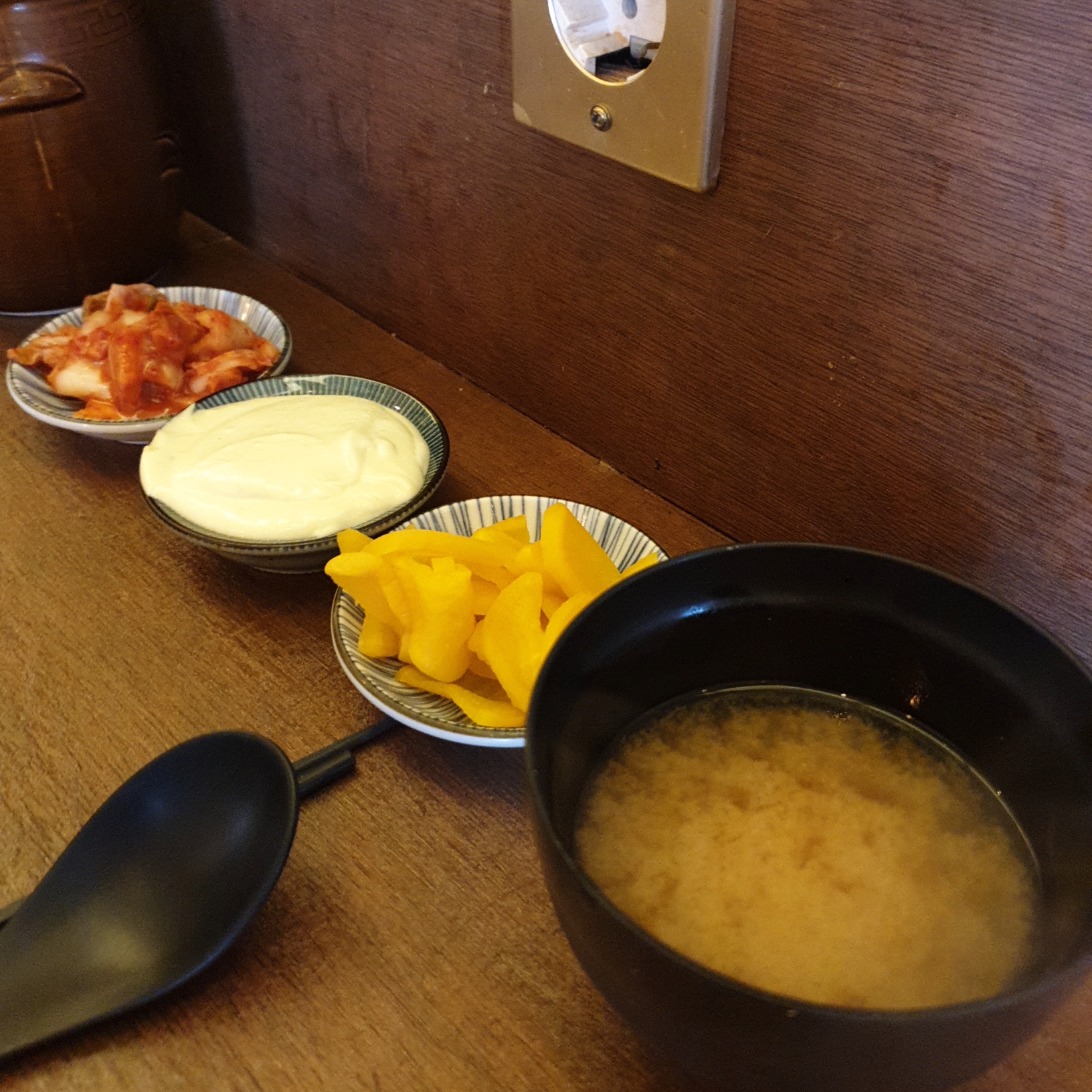 요건 와사비마요 보여드리려고 찍어봤습니다. 다른 집과 다른점이 이렇게 소스를 따로 또 준다는 건데, 저게 느끼하지 않은게 아주 튀김과 궁합이 최고였습니다.