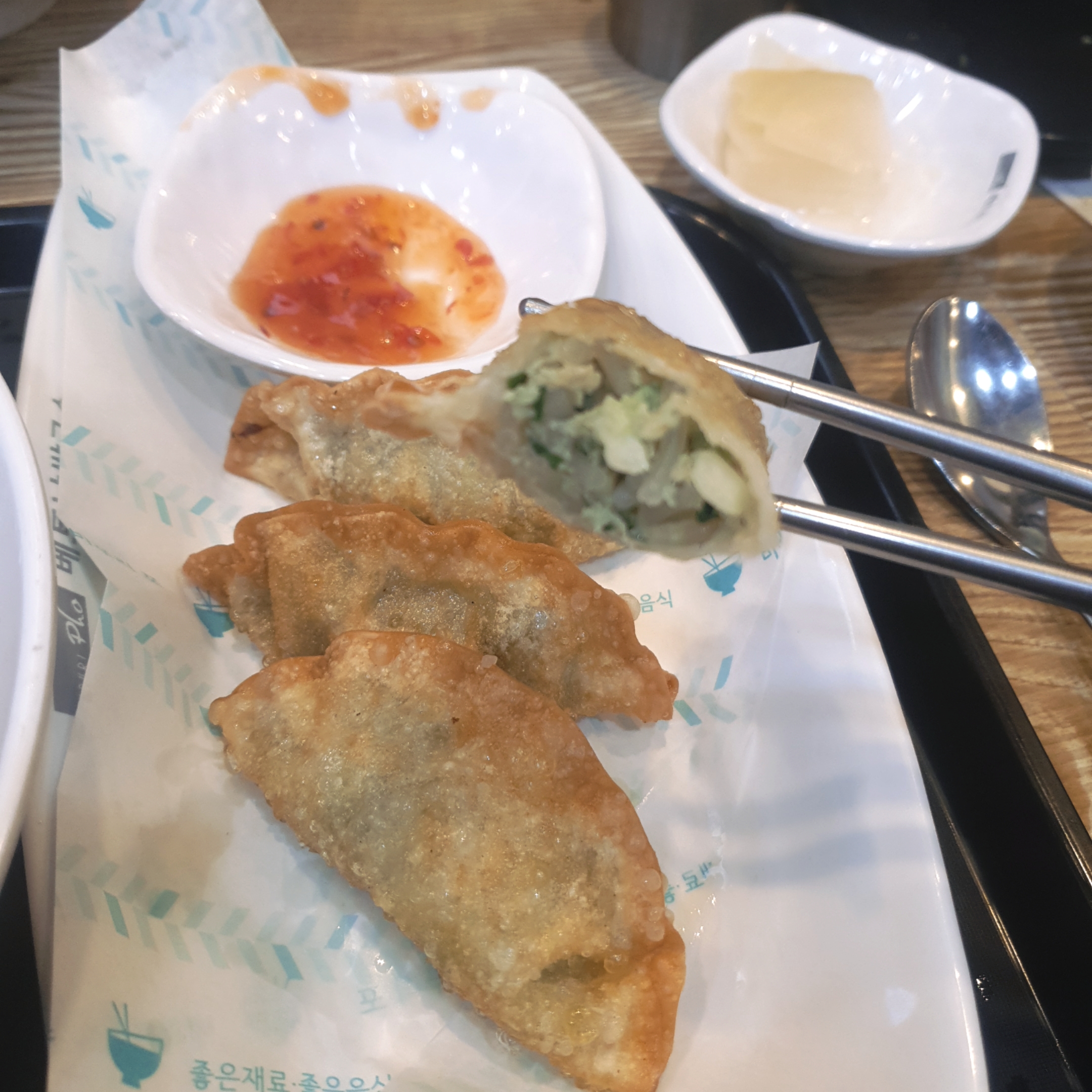 튀김만두는 칠리소스랑 같이 줍니다.