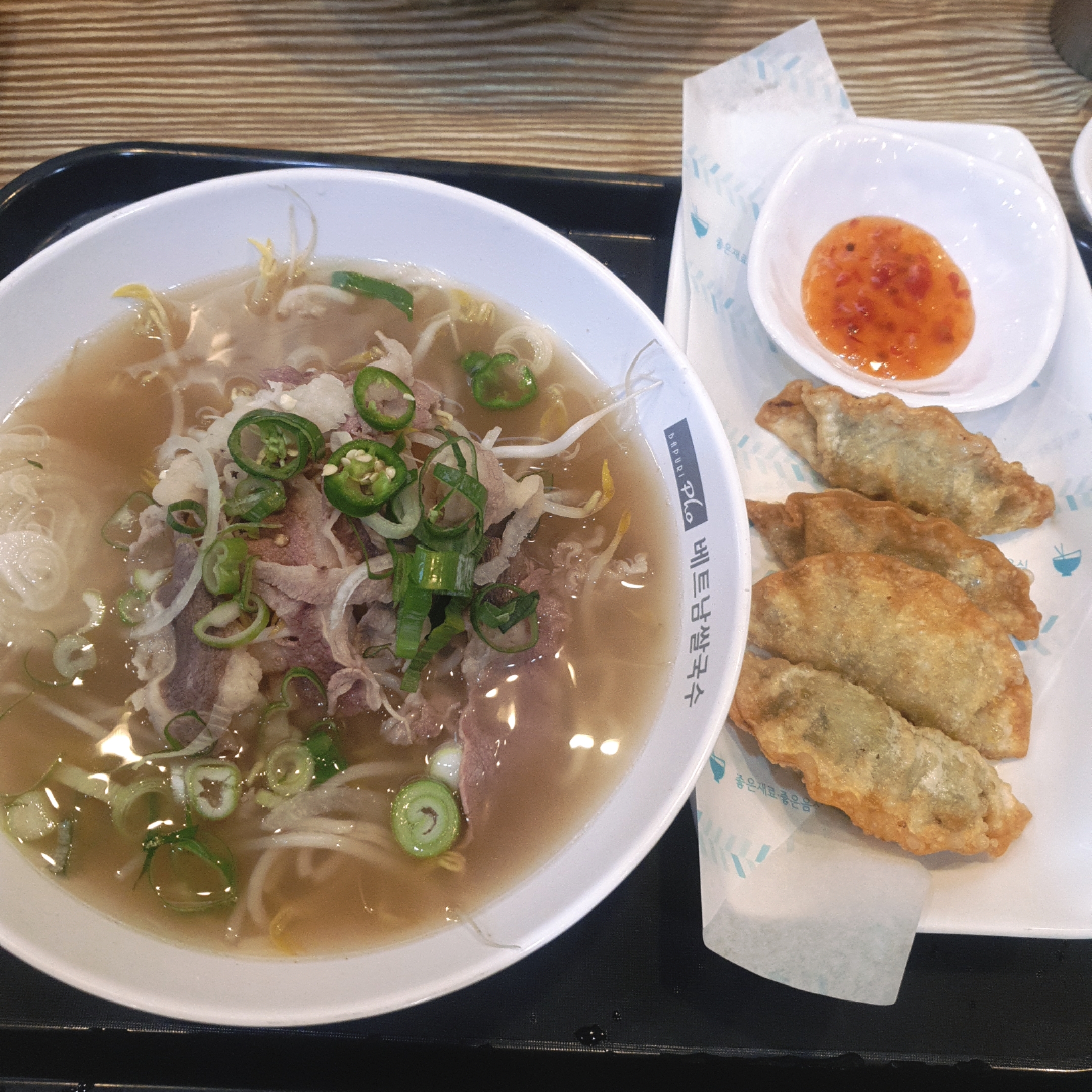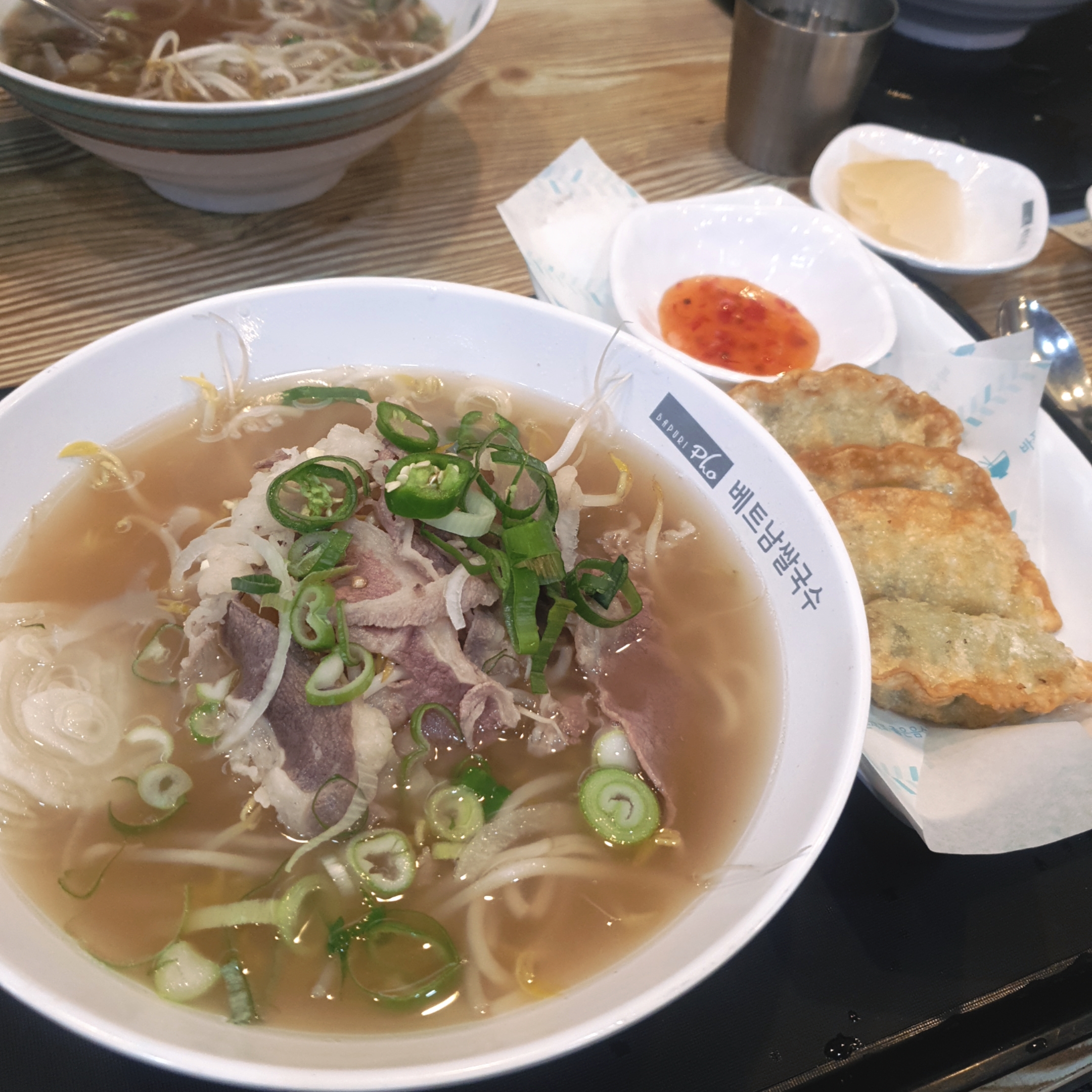 저는 'A세트'로 양지쌀국수와 튀김만두4개 나오는 메뉴를 시켰습니다.