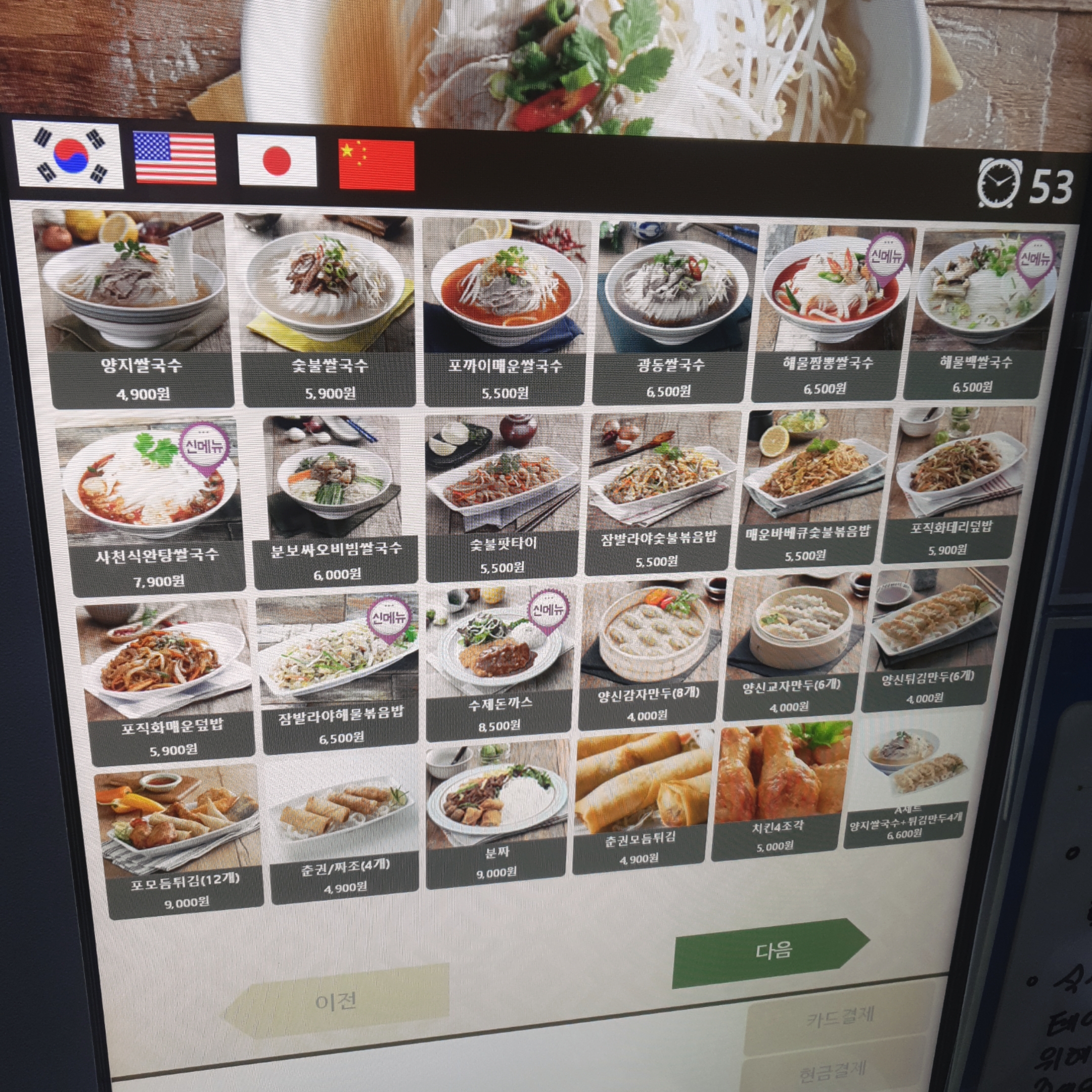 들어가시면 키오스크로 주문하시면 되는데, 쌀국수류도 있고, 덮밥류도 있어 취향에 맞게 시키시면 됩니다.