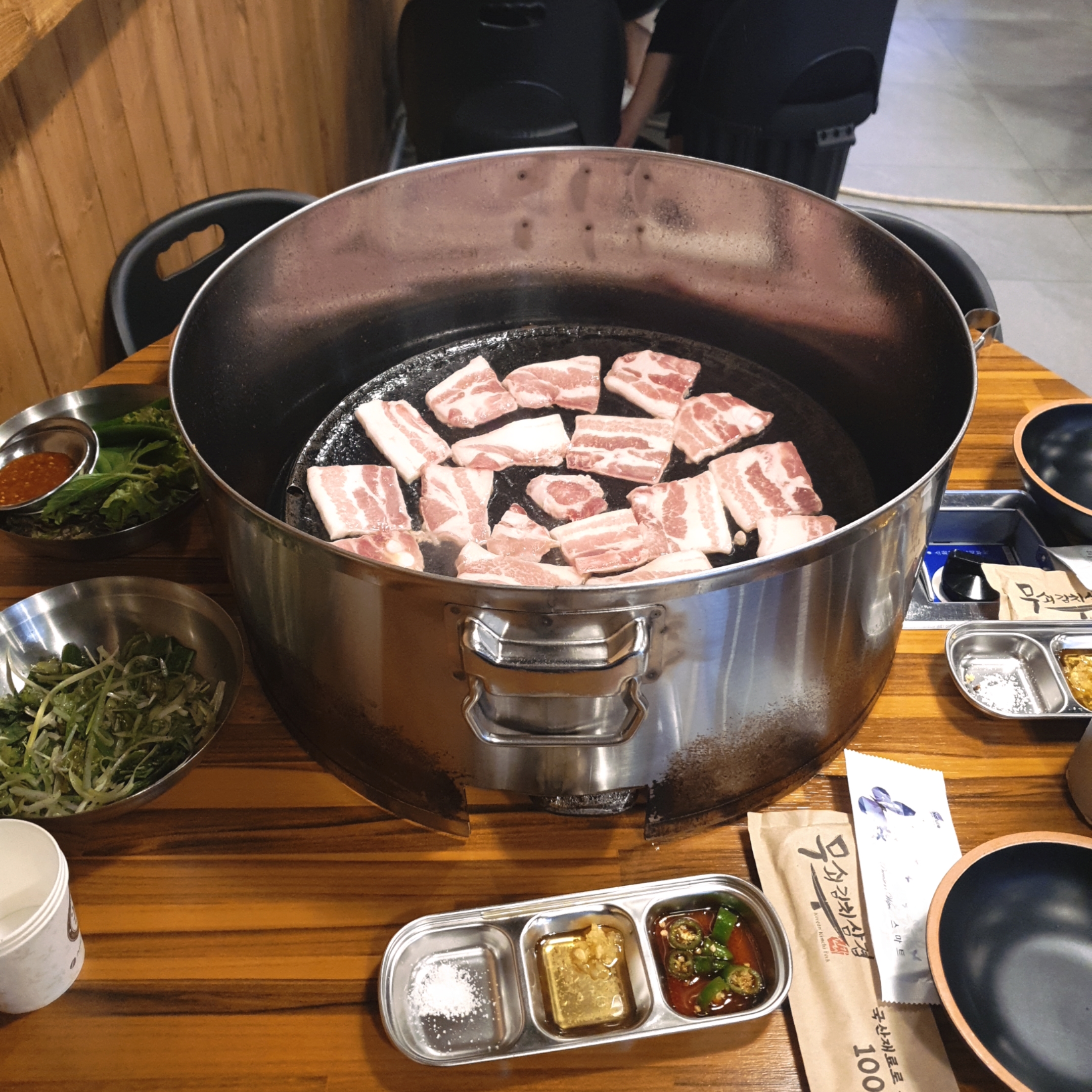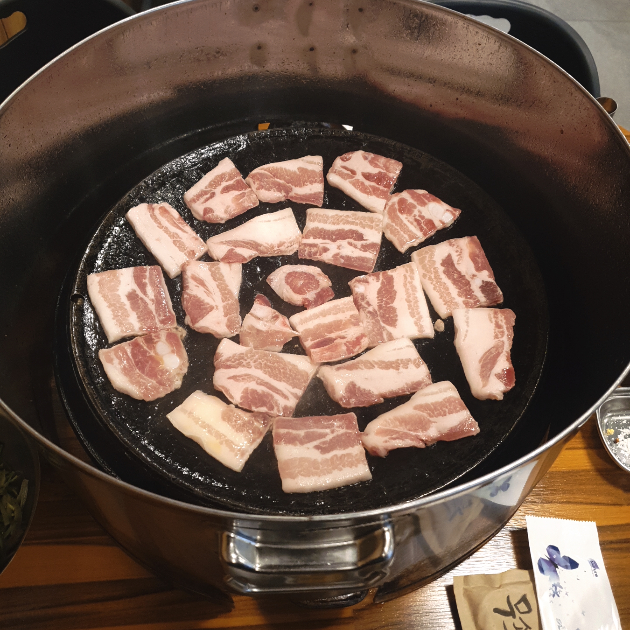 솥뚜껑 삼겹살 처음 먹어봤는데 그렇게 매력이 있었습니다.