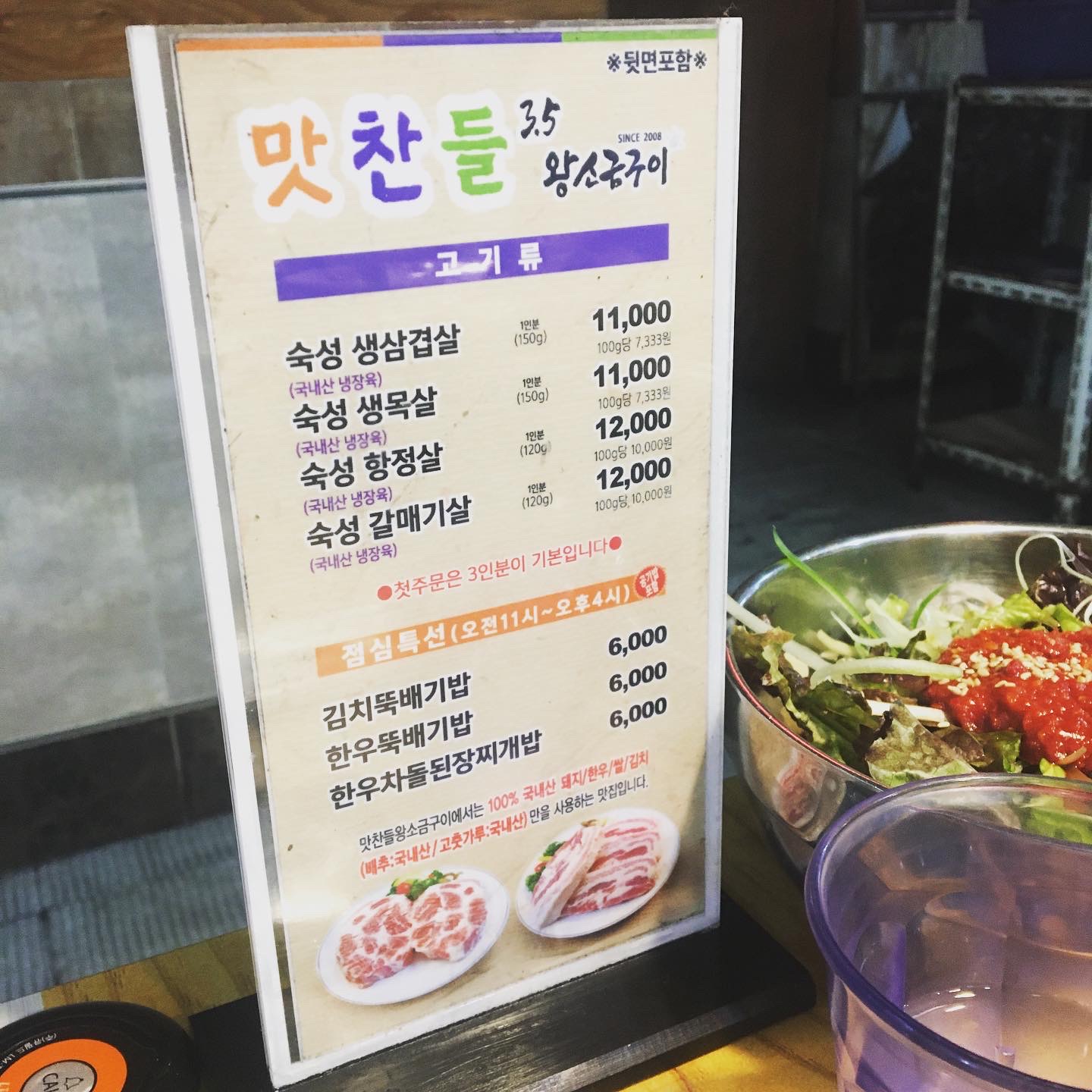 삼겹살, 목살, 항정살, 갈매기살이 있고 그 외엔 점심특선이 있는걸 알 수 있습니다.