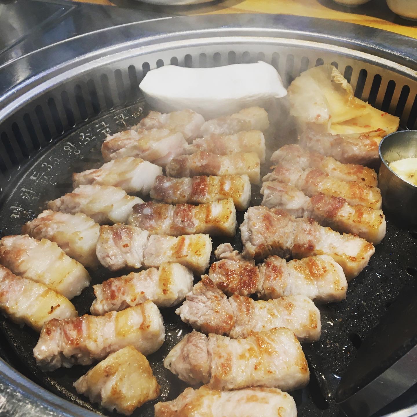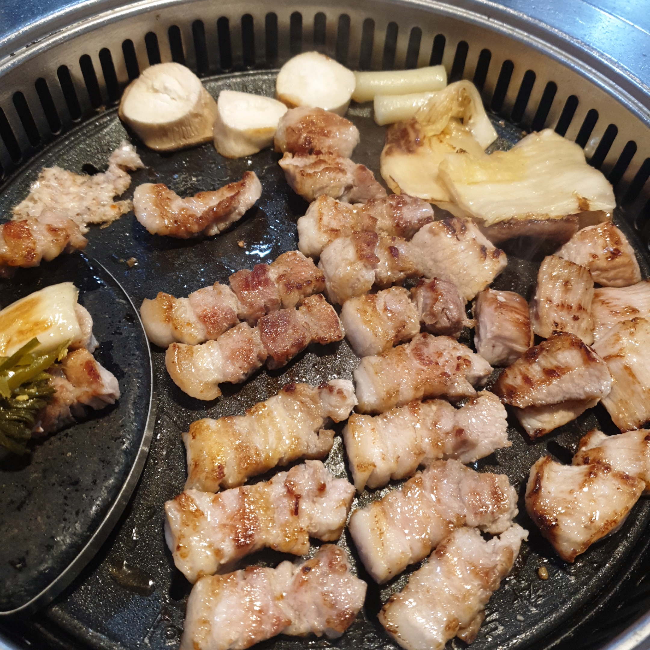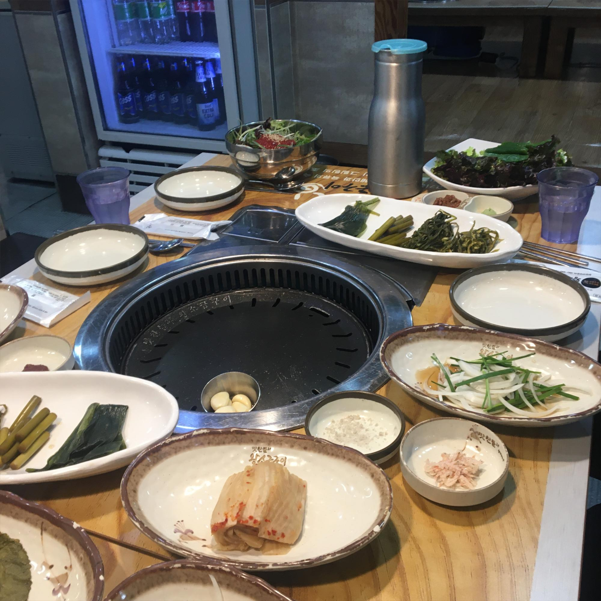 제공되는 고기의 양을 충분히 소화할 수 있는 양으로 많은 종류의 반찬이 있었는데, 인상적인건 나물들과 물에 살짝 씻은 묵은지. 이것들과 함께 고기를 먹으면 기존에 쌈싸먹는 것과는 또 다른 맛을 즐길 수 있습니다.
