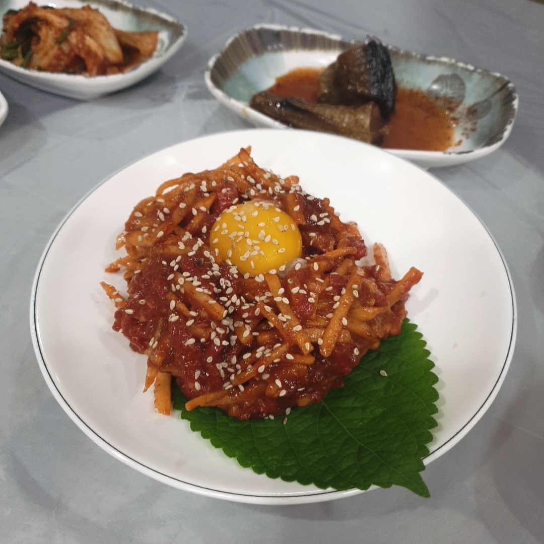 고기가 신선한지 비린내나 잡내가 하나도 안나고, 양념맛으로 먹는게 아닌 고기 그 자체의 맛을 즐기면서 먹기 좋은 육회였습니다.