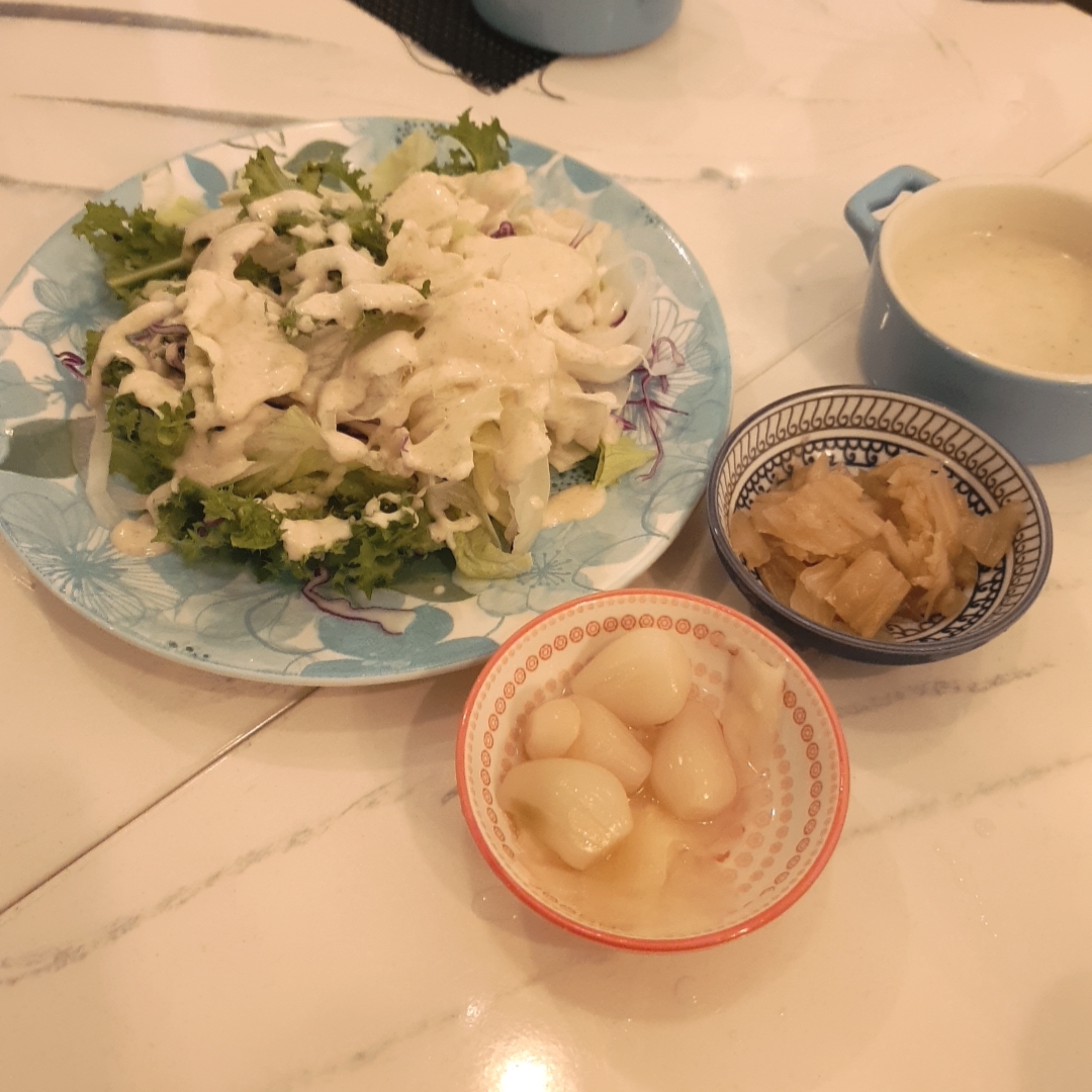에피타이저 샐러드와 스프.
