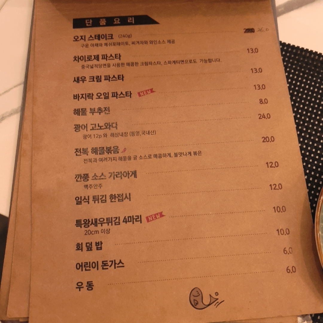 초밥, 파스타, 스테이크, 회 등 정말 다양한 메뉴가 준비되어 있습니다.