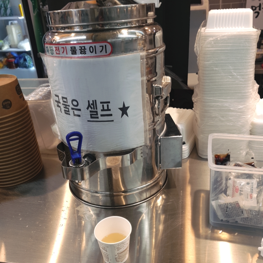 어묵국물. 어묵을 따로 팔진 않았지만 이렇게 국물은 제공이 되고 있습니다.