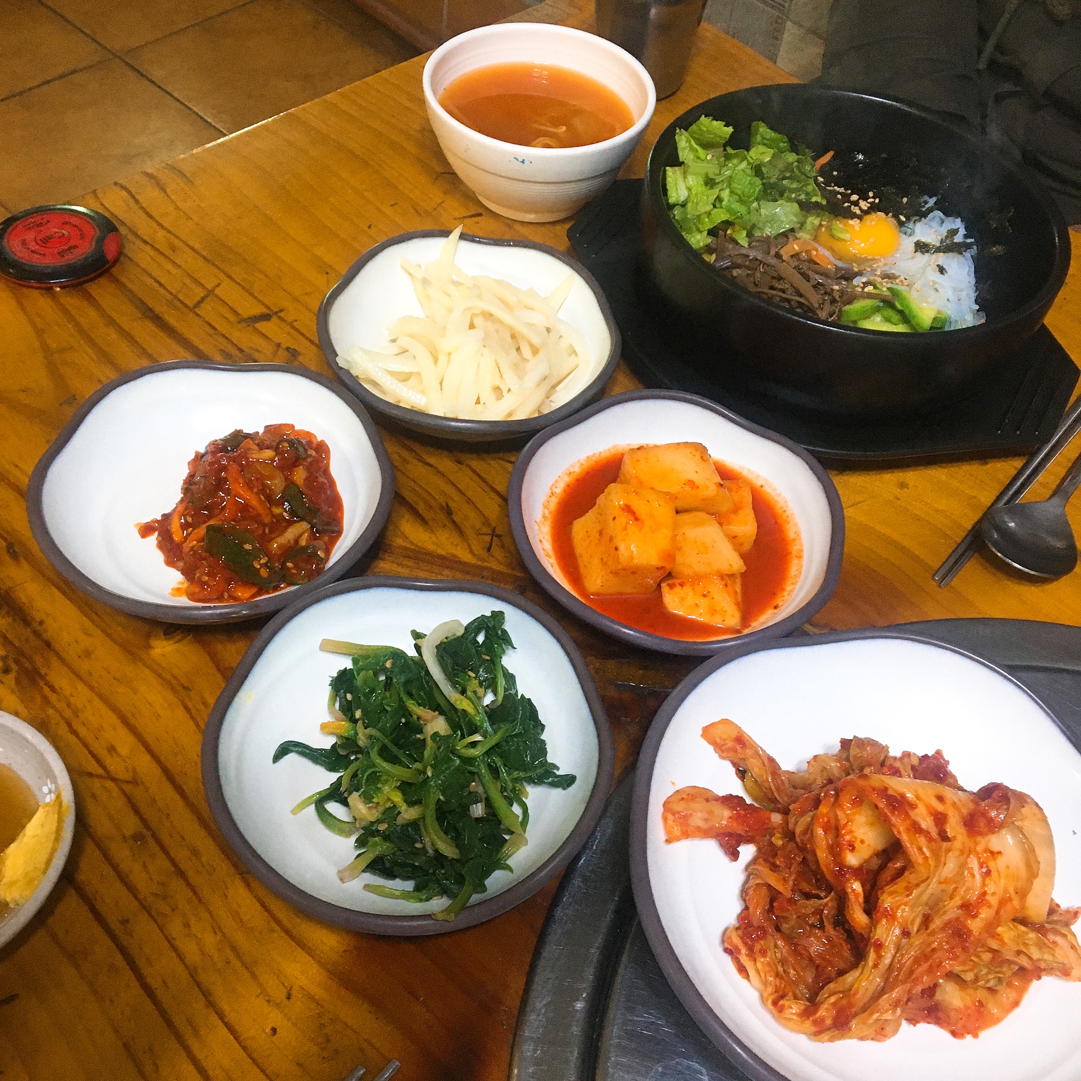 위 사진에 살짝 돌솥비빔밥이 나오는데, 한입 얻어먹어봤는데 고소함이 일품이었습니다.