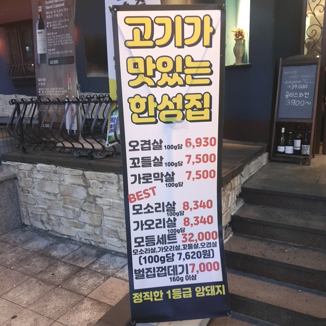 고기 자체의 질이 좋아서 전체적으로 만족했고, 근처 호텔 1층에 있는 와인집에서 와인을 사서 같이 먹을 수 있는 점도 좋았습니다.