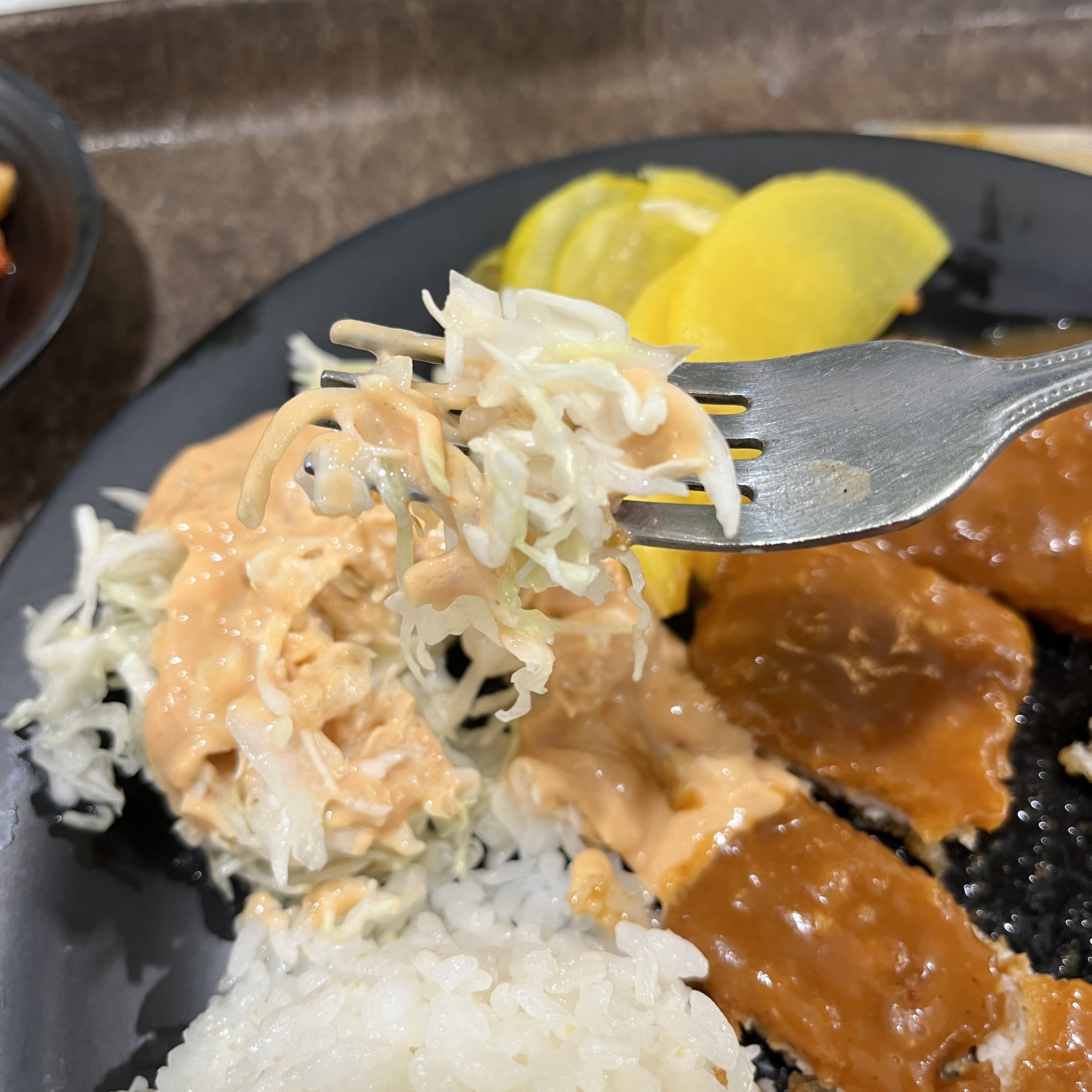 요런 달콤한 돈까스는 케요네즈 양배추 샐러드가 정석이죠.