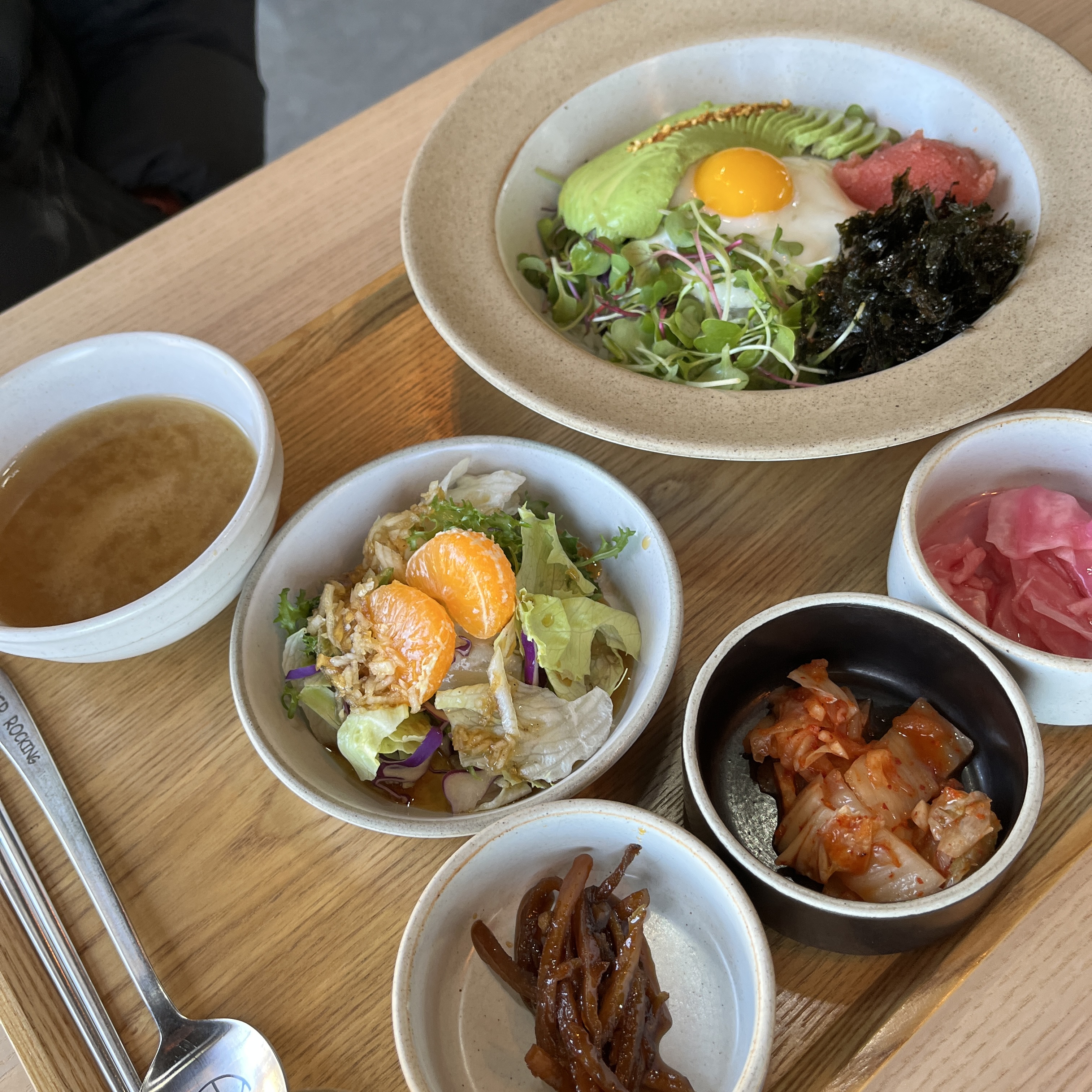 전 지인과 함께 '아보카도 명란 비빔밥'과 '돈까스'를 시켰습니다.