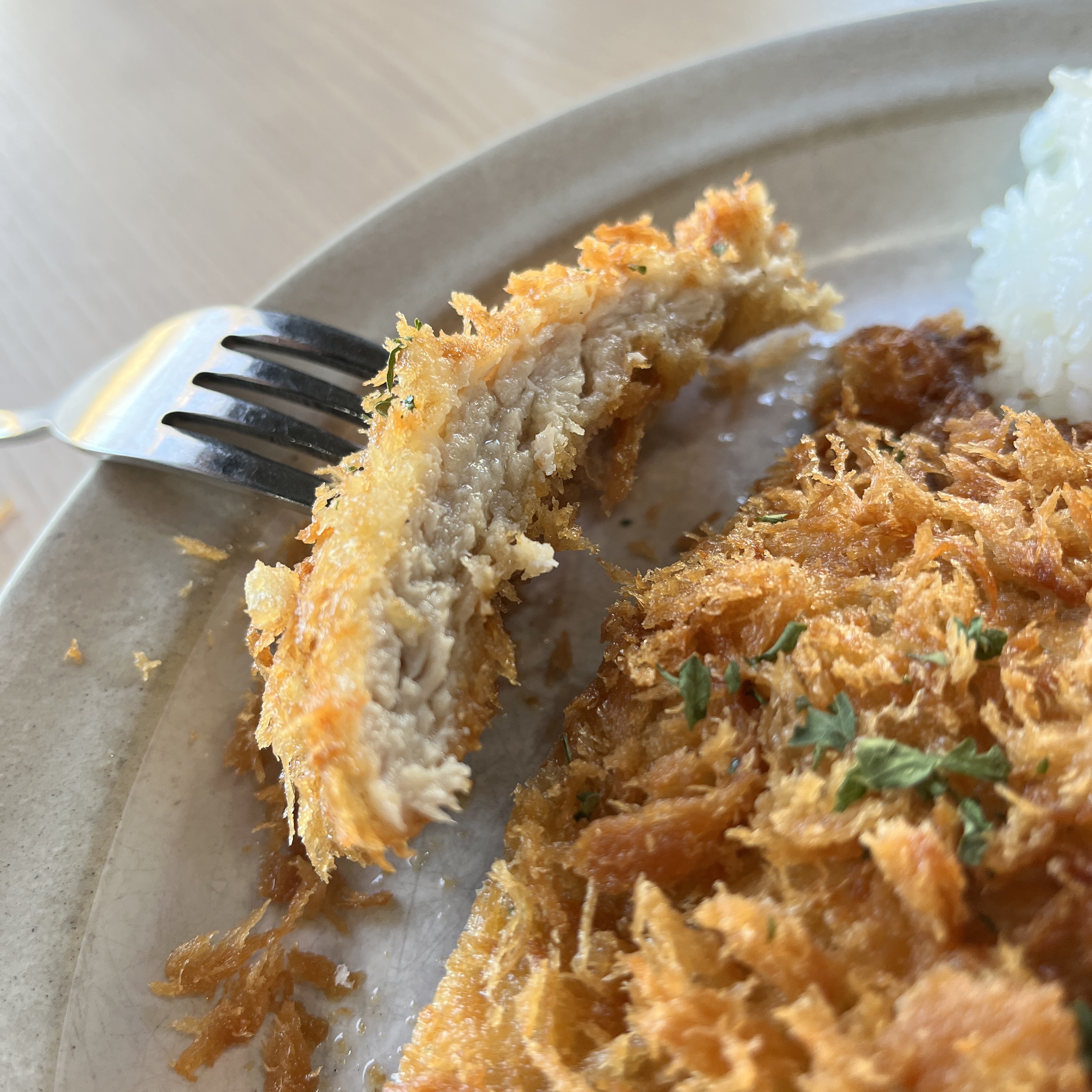 튀김옷에 빵가루가 아주 적당히 묻혀져 있었고 조리도 타지 않고 잘 되어 있어서 겉은 바삭함의 극치였고,