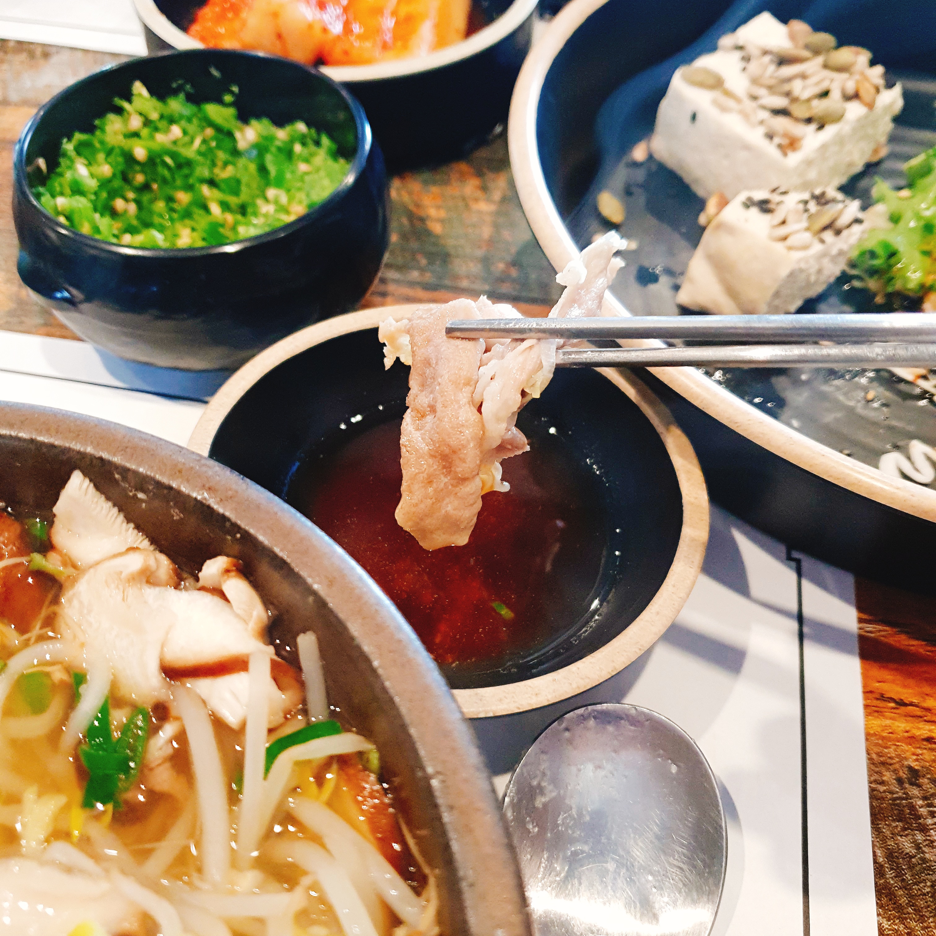 버섯 수북히 쌓인건 위에서 보여드렸고, 휘저으면 버섯 숨이 죽으면서 해장국이 드러나게 됩니다.