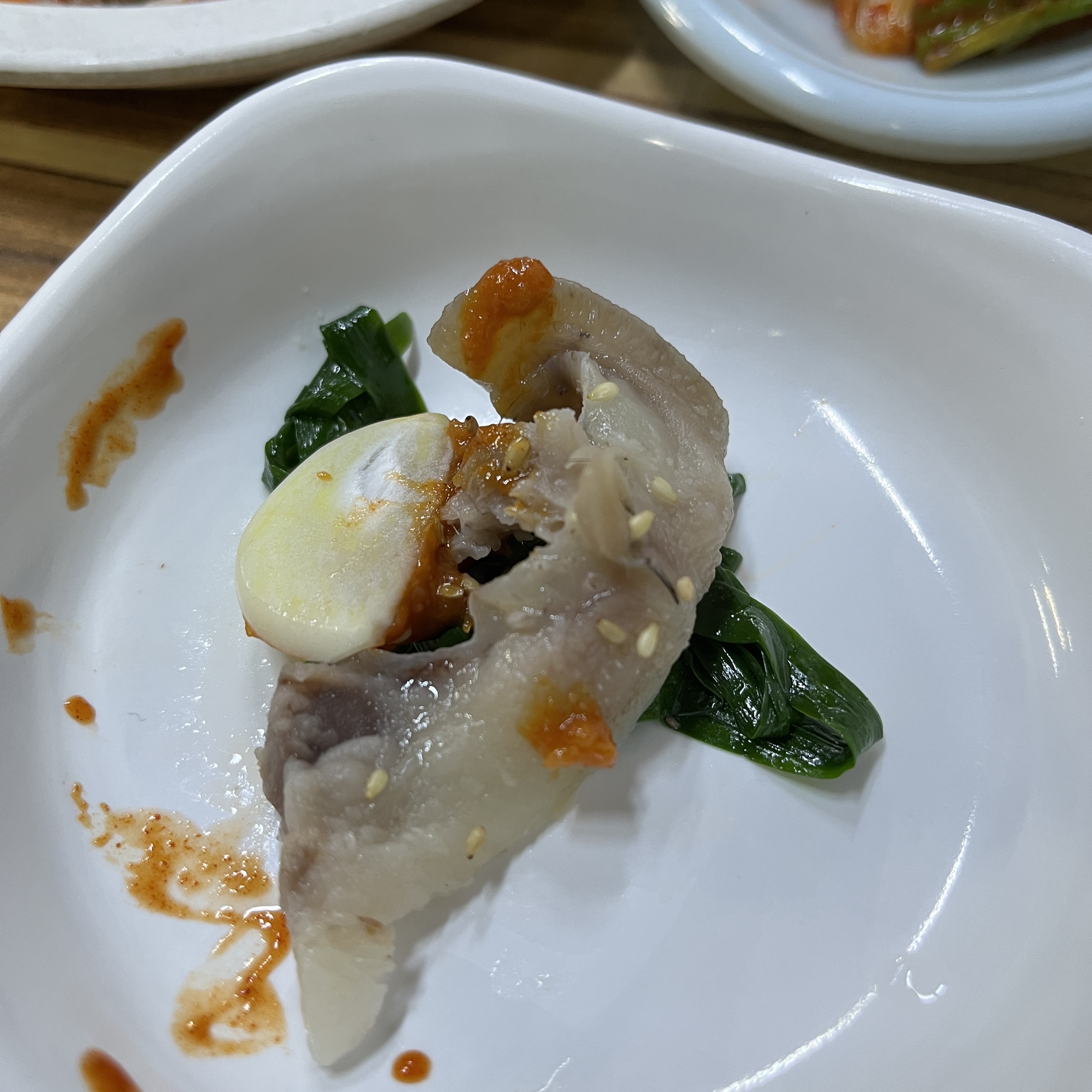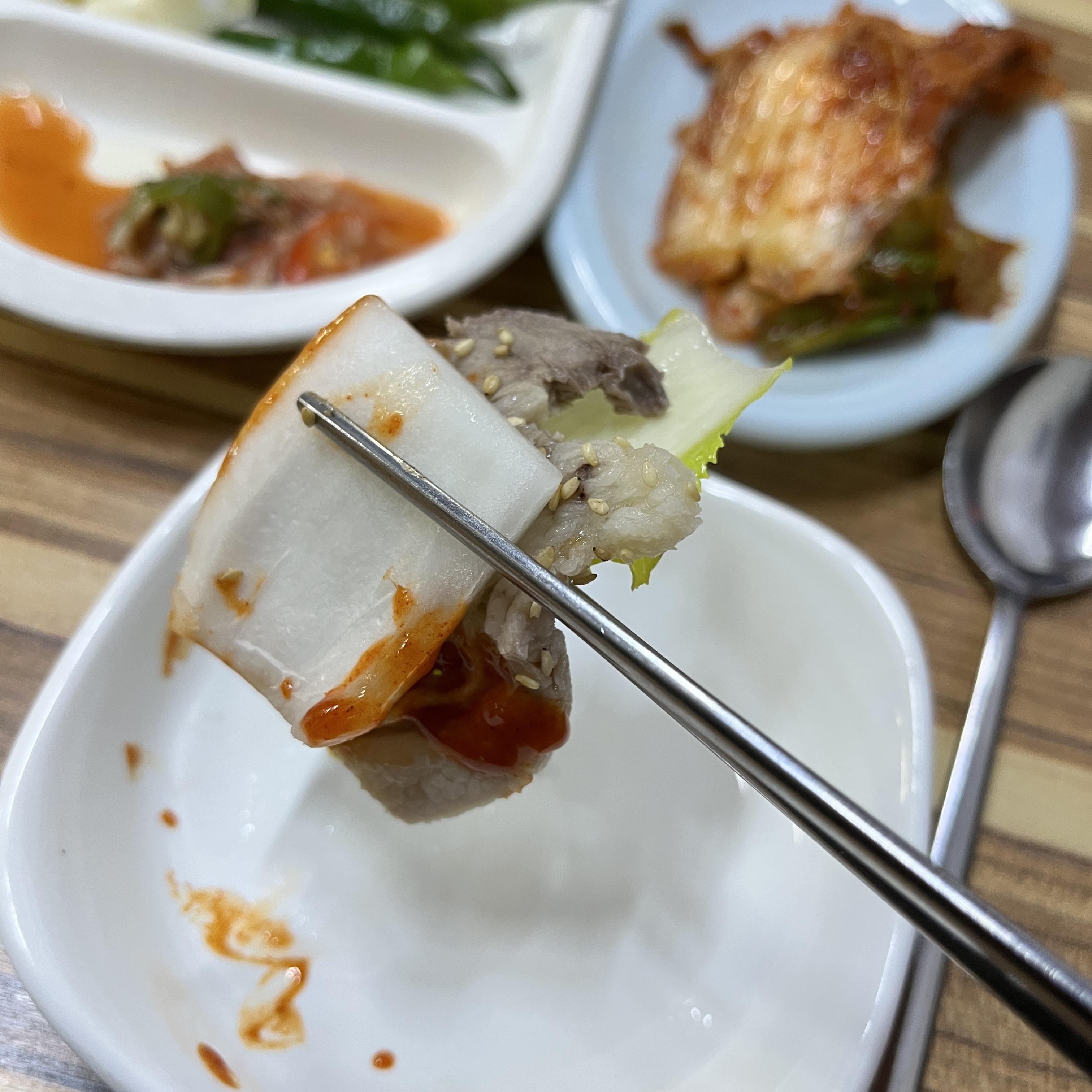 일단 배추랑 부추가 진짜 야들야들하니 잘 익어서 고기 싸먹기 딱 알맞았습니다.