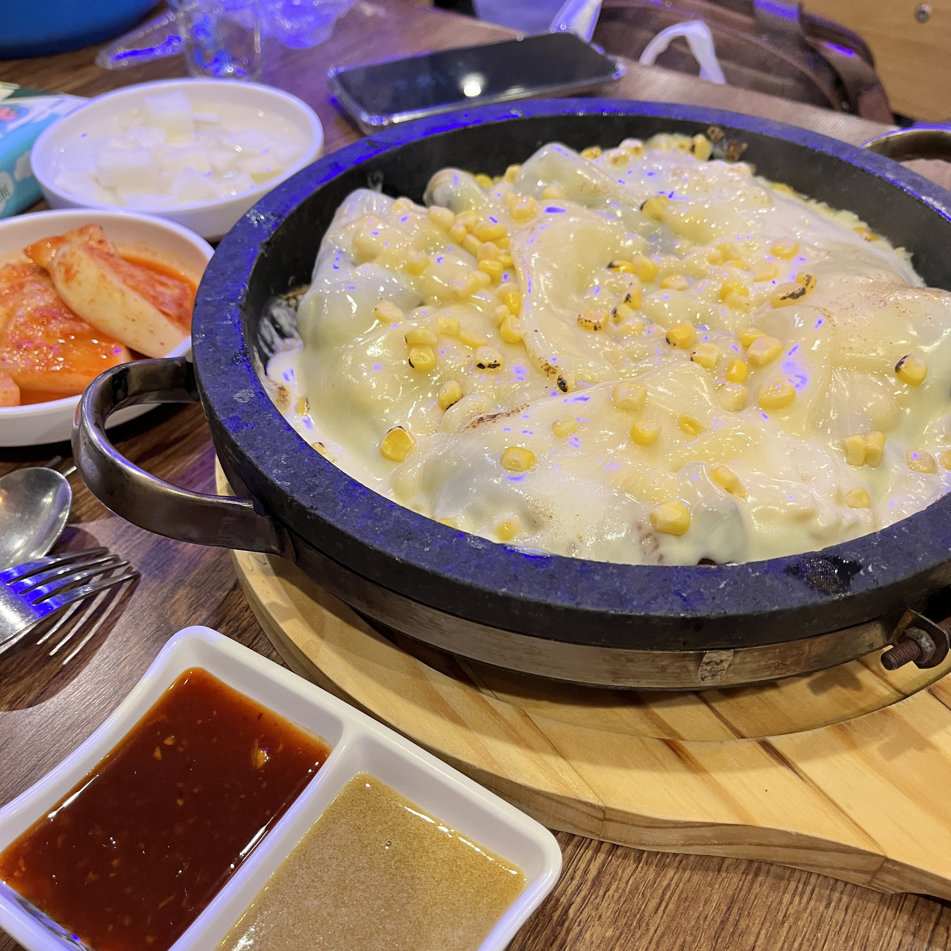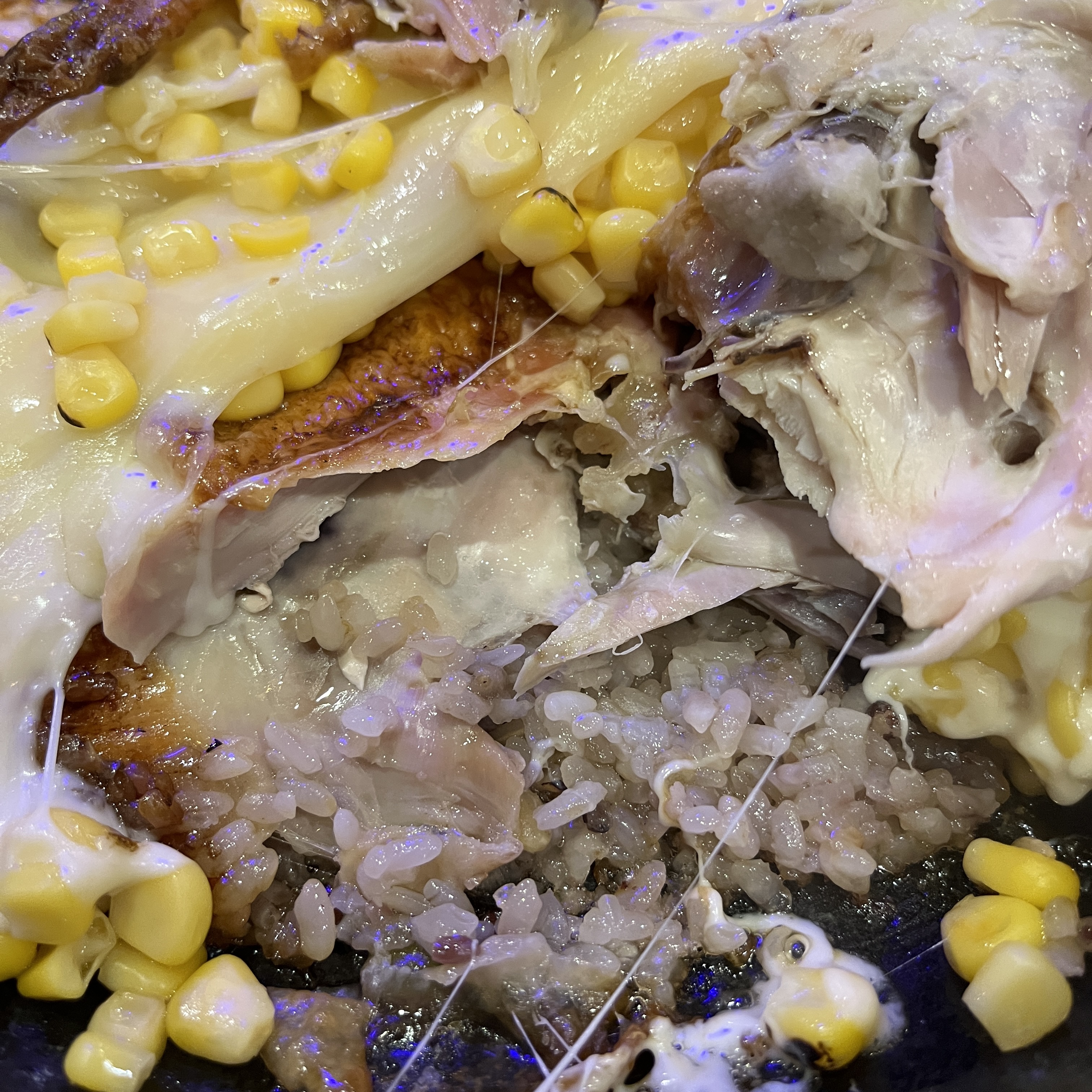 콘이 살짝 그을린걸 보니 토치로 치즈 녹이셨나 싶습니다.